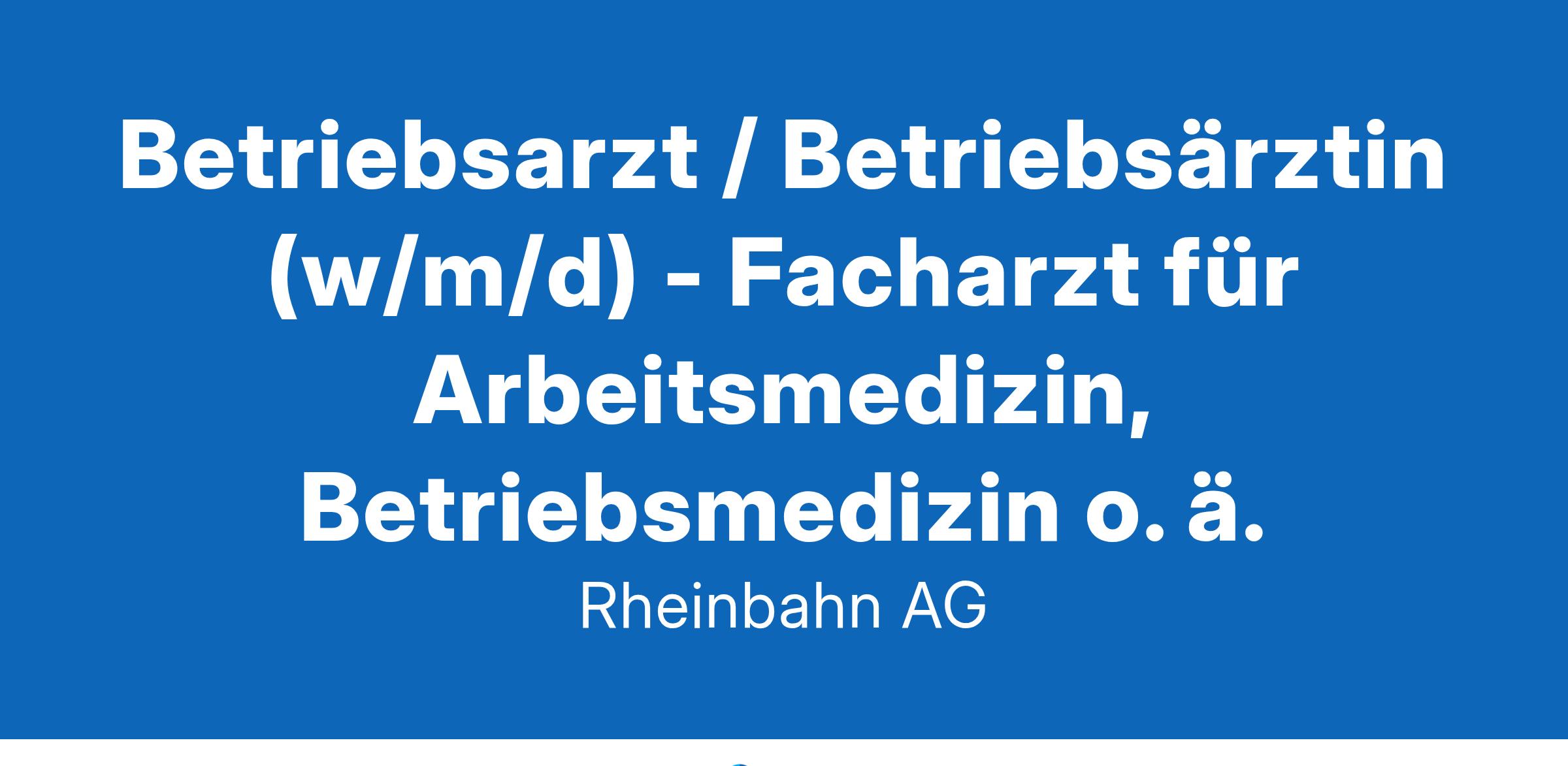 Gestalten Sie mit uns Ihre Zukunft! Die Rheinbahn steht für Flexibilität und Mobilität. Unsere Aufgabe ist die Sicherung von Mobilität für Menschen in Düsseldorf und der Region. Als größtes Nahverkehrsunternehmen im Verkehrsverbund Rhein-Ruhr (VRR) erzielen wir seit Jahren überdurchschnittliche Markterfolge. Gestalten Sie mit uns Ihre Zukunft! Zur Fortführung unserer Unternehmensstrategie suchen wir eine*n Betriebsarzt/Betriebsärztin (w/m/d) - Facharzt für Arbeitsmedizin, Betriebsmedizin o. ä. Betriebsarzt/Betriebsärztin (w/m/d) - Facharzt für Arbeitsmedizin, Betriebsmedizin o. ä. Zu Ihrem Aufgabengebiet gehören: Übernahme von Aufgaben der Grund- und betriebspezifischen Betreuung der Rheinbahn AG und externer Kunden nach Vorgabe des leitenden Betriebsarztes Durchführung der Eignungsuntersuchungen und der arbeitsmedizinischen Vorsorgen Durchführung von sonstigen Begutachtungen und Stellungnahmen bei Anfragen Mithilfe bei der Erfüllung der Grundbetreuung Enge Zusammenarbeit mit unseren Medizinischen Fachangestellten und unserem Betriebspsychologischem Dienst Das wünschen wir uns: Erfolgreicher Abschluss als Facharzt/Fachärztin für Arbeitsmedizin oder Zusatzbezeichnung Betriebsmedizin Erste Erfahrung in Verkehrsmedizin gewünscht Hohe soziale Kompetenz und Empathie Sicherer und selbstbewusster Umgang mit Menschen Team- und Kommunikationsfähigkeit Selbstsicheres und positives Auftreten Das bieten wir: Anspruchsvolle, spannende wie abwechslungsreiche Tätigkeit Anspruch auf Weihnachts-, Urlaubsgeld und Leistungsprämie Anspruch auf Betriebsrente Tariflicher Urlaub von 30 Tagen Fahrrad-Leasing FirmenTicket, modernes Betriebsrestaurant, eigener Fitnessraum und vielseitige Gesundheitsmaßnahmen, Corporate Benefits und vieles mehr Die Rheinbahn hat sich Chancengleichheit für alle Geschlechter und berufliche Förderung von Frauen zum Ziel gesetzt. Wir freuen uns deshalb sehr über Bewerbungen weiblicher Fachkräfte. Ausdrücklich erwünscht sind auch Bewerbungen von Menschen mit Einwanderungsgeschichte. Schwerbehinderte Menschen werden bei entsprechender Eignung bevorzugt. Fühlen Sie sich angesprochen? Fühlen Sie sich angesprochen? Dann bewerben Sie sich gerne ganz unkompliziert über unser Online-Bewerberportal unter www.rheinbahn.de/karriere. Bitte vergessen Sie nicht, uns Ihre Gehaltsvorstellung sowie den frühestmöglichen Eintrittstermin mitzuteilen. Ansprechpartnerin: Linda Seeger-Kinze