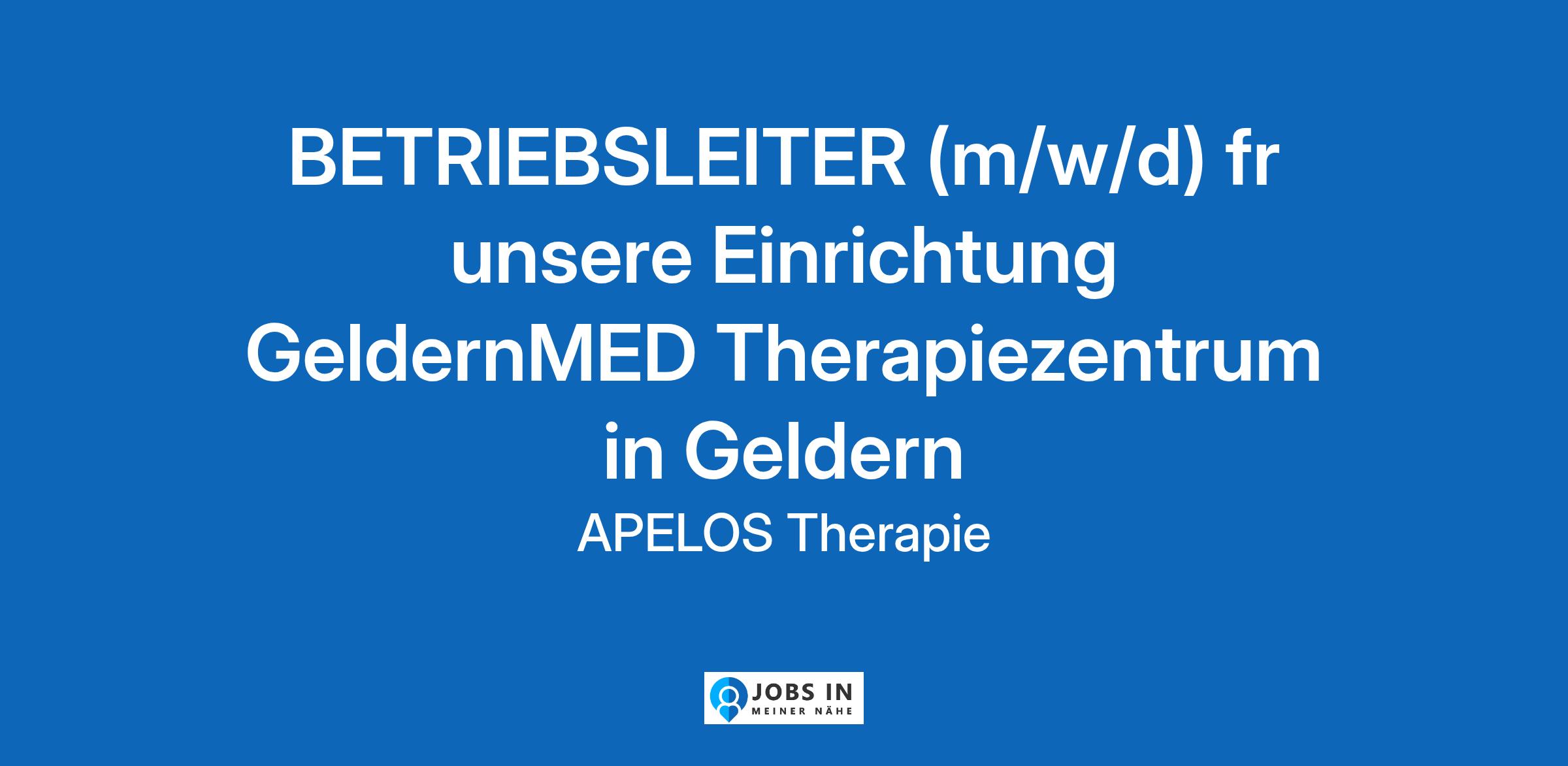 Zur Verstrkung unseres therapeutischen Teams in unserer Einrichtung in Geldern suchen wir zum nchstmglichen Zeitpunkt einen Betriebsleiter (m/w/d)!