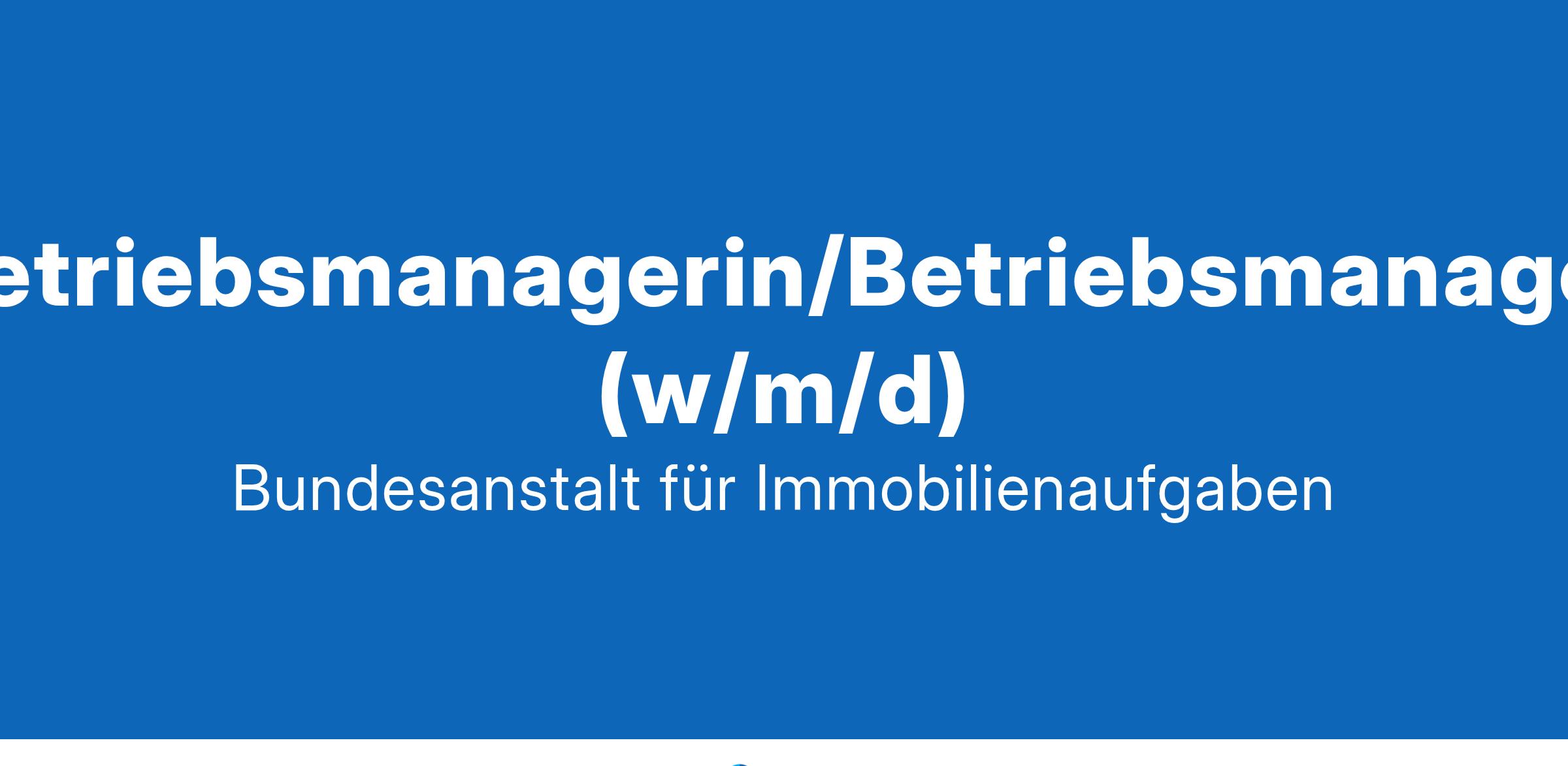 Die Bundesanstalt für Immobilienaufgaben – Anstalt des öffentlichen Rechts – Direktion Magdeburg sucht im Geschäftsbereich Facility Management für die Betreuung der im Eigentum der Bundesanstalt stehenden Liegenschaften am Arbeitsort Hannover zum nächstmöglichen Zeitpunkt unbefristet eine/einen: Betriebsmanagerin/Betriebsmanager (Elektroingenieurin/Elektroingenieur) (w/m/d) (bis EG 10 TVöD Bund /A 10 BBesG – Tarifgebiet West, Kennung MDFM2551) Haben wir Ihr Interesse geweckt? Dann bewerben Sie sich online bis zum 24. Februar 2025 auf unter der Stellen-ID 1252831.