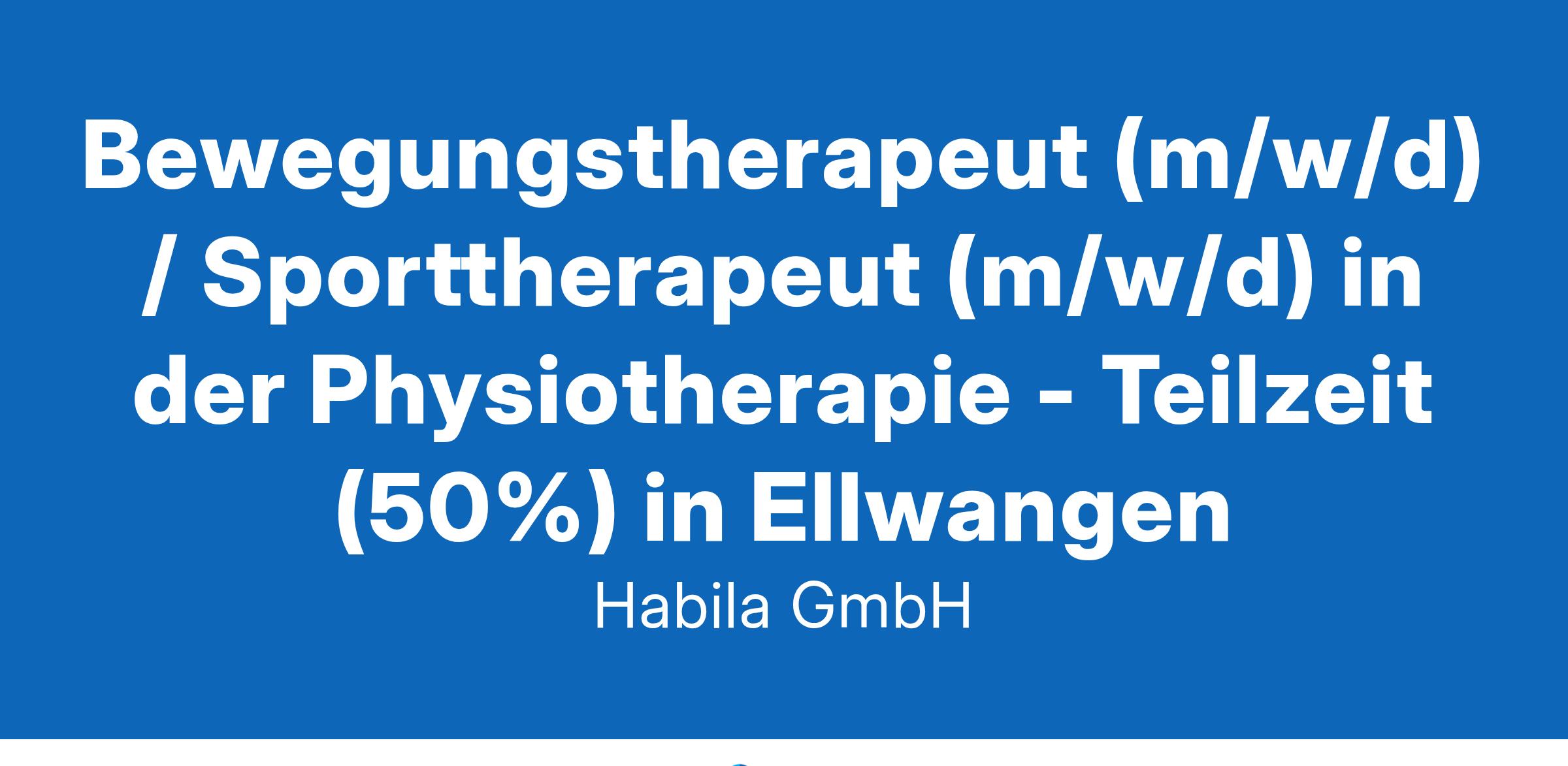 Bewegungstherapeut (m/w/d) / Sporttherapeut (m/w/d) in der Physiotherapie - Teilzeit (50%) in Ellwangen Die Habila bietet in Baden-Württemberg an 22 Standorten rund 1.600 Menschen mit Behinderung ein vielfältiges Dienstleistungsangebot in den Bereichen Wohnen, Arbeiten, Bildung und Freizeit. Bewegungstherapeut (m/w/d) / Sporttherapeut (m/w/d) in der Physiotherapie – Teilzeit (50%) in Ellwangen Für unsere Einrichtung Rabenhof Ellwangen suchen wir ab sofort einen Bewegungstherapeuten (m/w/d) / Sporttherapeuten (m/w/d) in der Bewegungstherapie. Die Stelle ist vorerst befristet bis November 2025 und umfasst einen Beschäftigungsumfang von 50%. Ihre Aufgaben bei uns Planung und Durchführung von gymnastischen Einzel- und Gruppenangeboten zur Förderung der Mobilität. Entwicklung und Umsetzung von sporttherapeutischen Programmen , die das Wohlbefinden steigern und die körperliche Leistungsfähigkeit verbessern. Gestaltung individueller Fitness-Übungsprogramme in enger Abstimmung mit den Bedürfnissen unserer Klient*innen. Förderung der Teilhabe von Menschen mit Behinderung durch Bewegung, Sport und Entspannung. Das bringen Sie mit Abgeschlossene Ausbildung als Bewegungstherapeut , Sport- und Gymnastiklehrer , Physiotherapeut oder vergleichbare Qualifikation. Eine positive Grundhaltung gegenüber Menschen mit Behinderung und Begeisterung für Inklusion. Verantwortungsbewusstes, selbstreflektiertes und eigenständiges Arbeiten. Spaß an Bewegung, Fitness und sportlichen Aktivitäten. Zertifikate in Teamsport, Qigong, Yoga, Entspannungsverfahren, Pilates, konzentrative Bewegungstherapie oder als Fitnesscoach (m/w/d) sind von Vorteil. Führerschein der Klasse B ist wünschenswert. Davon profitieren Sie Einen sicheren Arbeitsplatz in einem kollegialen, multiprofessionellen Team. Eine abwechslungsreiche und sinnstiftende Tätigkeit mit viel Gestaltungsspielraum für Ihre Ideen. Umfangreiche Fort- und Weiterbildungsmöglichkeiten . Attraktive Vergütung nach TVöD-B/VKA inklusive betrieblicher Altersvorsorge (ZVK). Zusätzliche Sozialleistungen wie: Betriebliches Gesundheitsmanagement. Externe Mitarbeiterberatung. Zugang zu unserem Corporate-Benefits-Programm. Ihre Bewerbung Klingt das nach Ihrer nächsten Herausforderung? Dann freuen wir uns auf Ihre Bewerbung! Nutzen Sie unser Online-Bewerberportal oder senden Sie Ihre Unterlagen direkt an: job-2950@habila.mhmhr.com Für Rückfragen steht Ihnen Sinja Holzner , Abteilungsleitung TSA, unter der Telefonnummer 07961 873-207 gerne zur Verfügung. Unternehmenssitz: Habila GmbH Bismarckstraße 72 72072 Tübingen