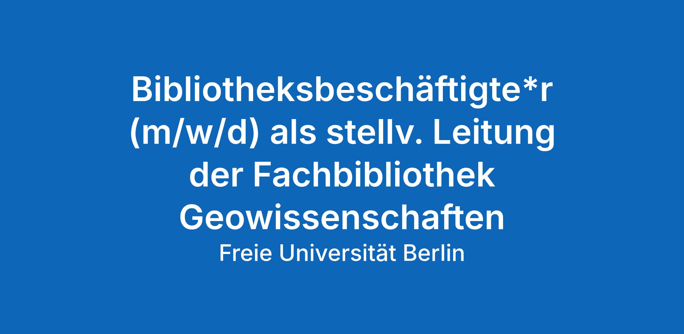 Für die Universitätsbibliothek suchen wir eine befristete Unterstützung der Leitung im Team der Fachbibliothek Geowissenschaften auf dem GeoCampus in Lankwitz und ihrer Zweigbibliothek Meteorologie am Institut für Meteorologie in Dahlem. Die Services an beiden Standorten werden durch elf Mitarbeitende geleistet, darunter vier bibliothekarische Hilfskräfte. Neben dem breiten Spektrum an wissenschaftlichen Medien zu Geographie, Geowissenschaften, Meteorologie, Paläontologie und Planetologie wird auch eine umfangreiche Spezialsammlung mit über 150.000 Karten und 3.000 Atlanten betreut.