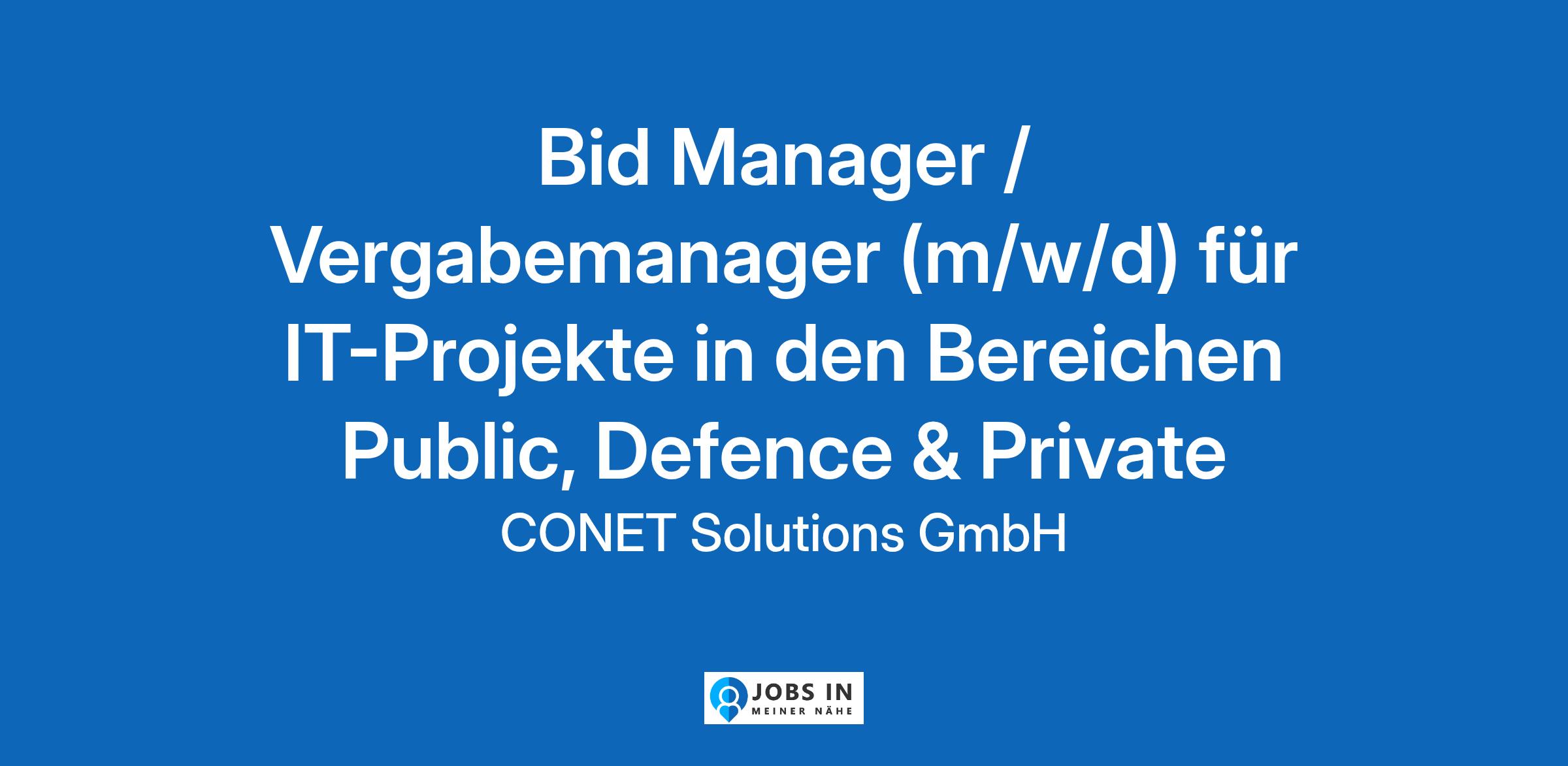 Die CONET Solutions GmbH bietet unter dem Motto "IT-Welten verbinden!" innovative IT-Lösungen in den Bereichen Data Intelligence & KI, Digitalisierung, Cyber Security, Strategic IT Management und Software Engineering an. Wir suchen dich ab sofort zur Verstärkung unseres Vertriebsteams an unserem ... Überwachung;Angebotsabgabe;Planung;Formalprüfung;IT-Projekt;Koordination;Kundenlösungen;Entwicklung;Arbeitsbedingungen;Qualitätskontrolle;Vertrieb Original Stellenanzeige auf StepStone.de – Jetzt Jobagent bei StepStone einrichten und Traumjob finden! https://bit.ly/2KOagYD Mehr Informationen zu Arbeitgebern, Gehaltsdaten und Karrieretipps finden Sie auf StepStone.de