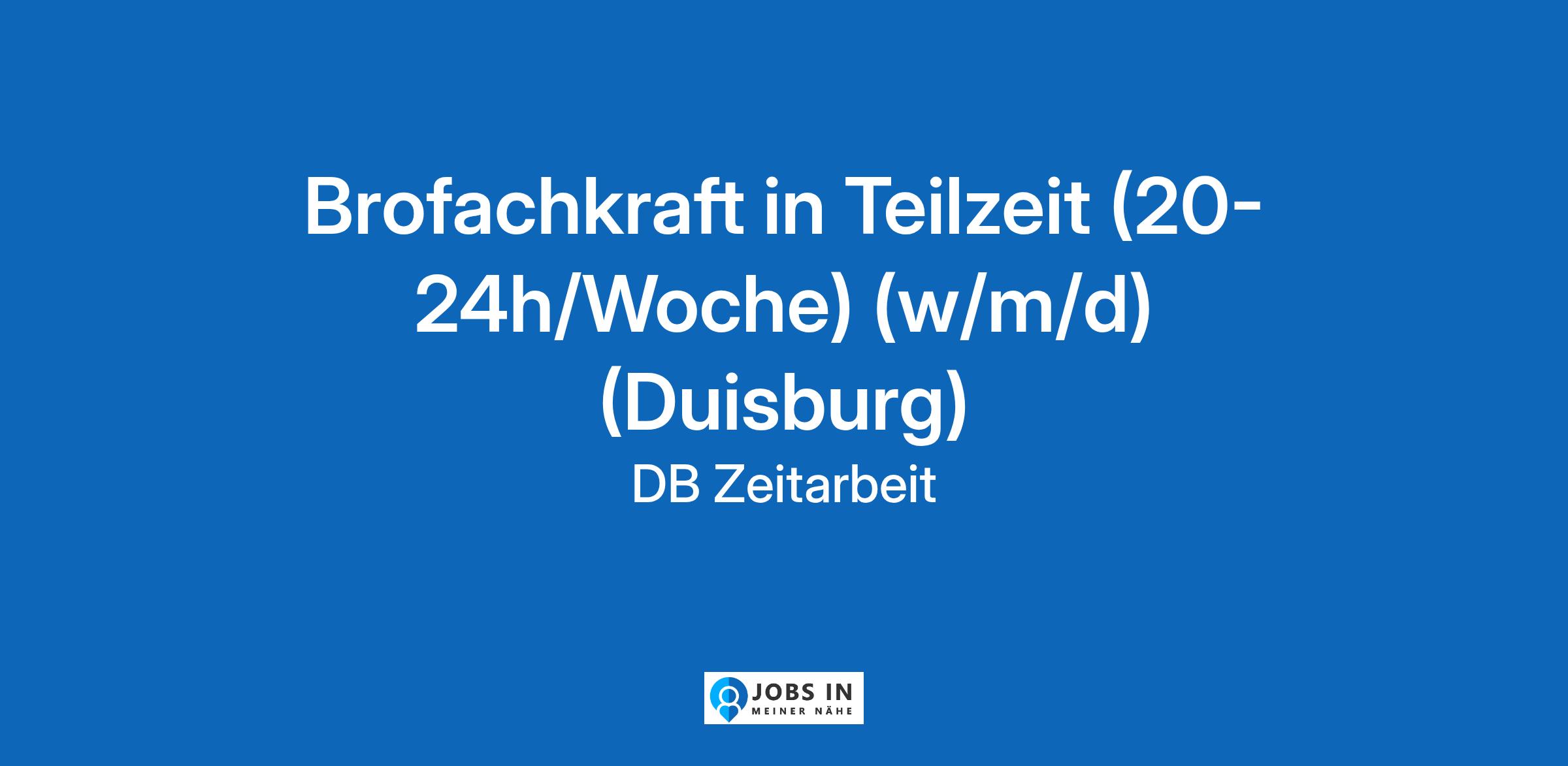 Zum nchstmglichen Zeitpunkt suchen wir dich als Zeitarbeitnehmer:in im Auftrag der DB Engineering & Consulting GmbH fr einen Einsatz als Brofachkraft in Teilzeit (20-24h/Woche) (w/m/d) am Standort Duisburg. Als Zeitarbeitnehmer:in erbringst du deine Arbeitsleistung direkt vor Ort im genannten Geschftsfeld, whrend du dein Arbeitsverhltnis mit uns, der DB Zeitarbeit, abschliet.