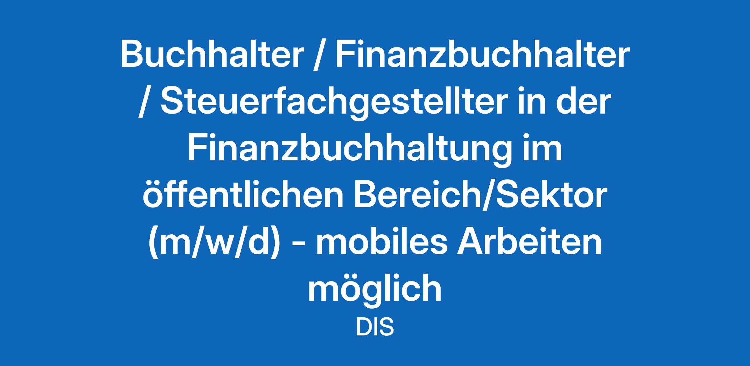 Buchhalter / Finanzbuchhalter / Steuerfachgestellter in der Finanzbuchhaltung im öffentlichen Bereich/Sektor (m/w/d) - mobiles Arbeiten möglich