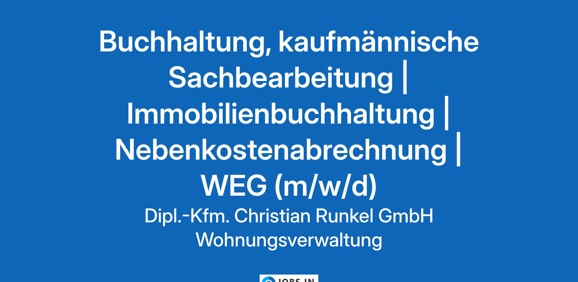 Buchhaltung, kaufmännische Sachbearbeitung | Immobilienbuchhaltung | Nebenkostenabrechnung | WEG (m/w/d)
