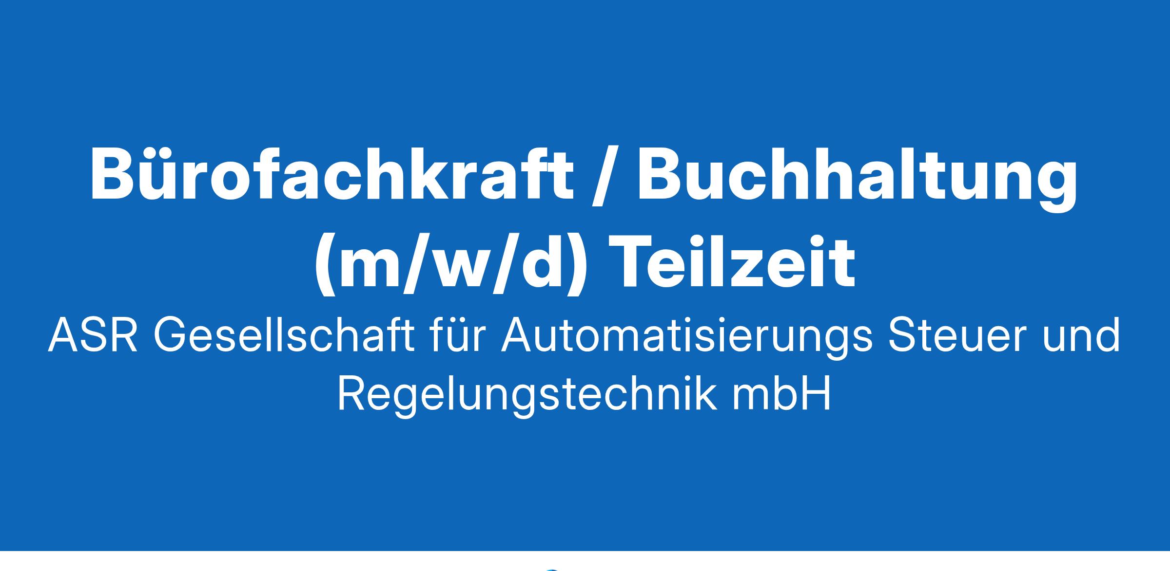 in Teilzeit Deine Hauptaufgaben: Buchhaltung Termin- und Reisemangement Korrespondenz, Bearbeitung der Ein- und Ausgangspost Allgemeine Bürotätigkeiten und Organisation Du bringst mit: Grundlagen der Buchhaltung Teamfähigkeit mit einem Blick über den Tellerrand Gute MS-Office Kenntnisse Englischkenntnisse wünschenswert Wir bieten dir: ein unbefristetes Arbeitsverhältnis einen zukunfts- und krisensicheren Arbeitsplatz eine verantwortungsvolle Tätigkeit in einem wachsenden Team Fahrrad-Leasing Möglichkeit der Weiterbildung Hochwertige Büroausstattung und Arbeitsmaterialien diverse Annehmlichkeiten wie z. B. Getränke und frisches Obst Option auf eine eventuelle Vollzeitstelle bei Bedarf Haben wir Ihr Interesse geweckt? Dann rufen Sie uns an: +49 8381 9123110 oder schreiben Sie uns unter Angabe der Referenznummer YF-17329: info[AT]asr-technik.com Wir freuen uns auf Sie! ASR - Gesellschaft für Automatisierungs-, Steuer- und Regelungstechnik mbH