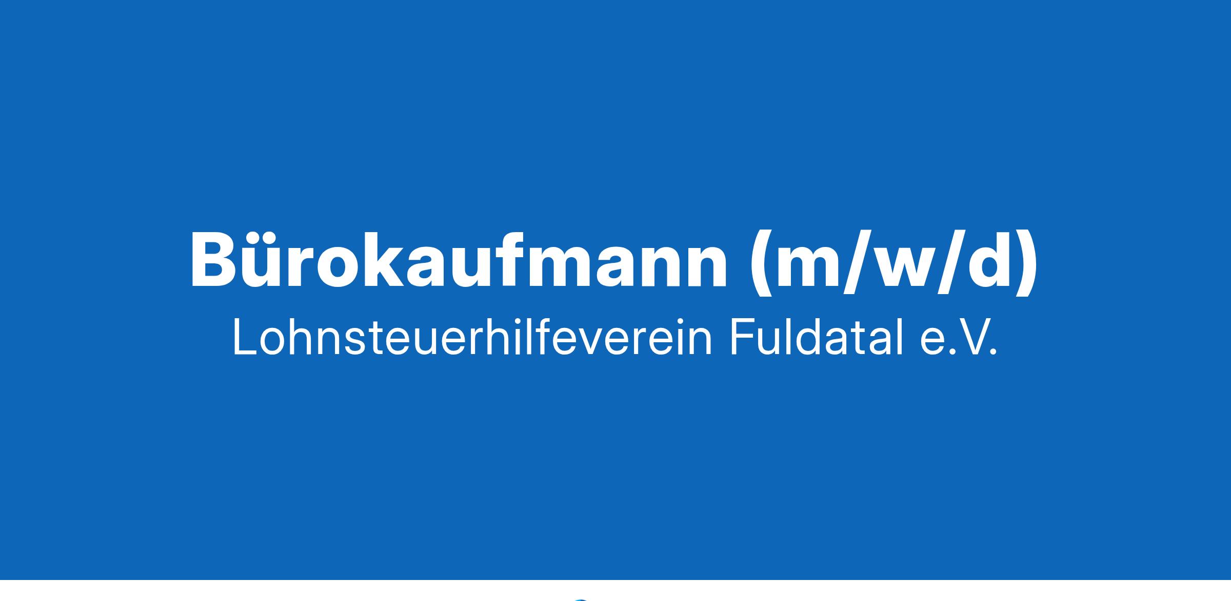 Bürokaufmann (m/w/d) Ihre Aufgaben sind u.a.: Bearbeitung von Abrechnungen Kommunikation mit unseren Beratungsstellen und Mitgliedern (telefonisch, per E-Mail und postalisch) Allgemeine Verwaltungstätigkeiten Bewerben Sie sich unter: Lohnsteuerhilfeverein