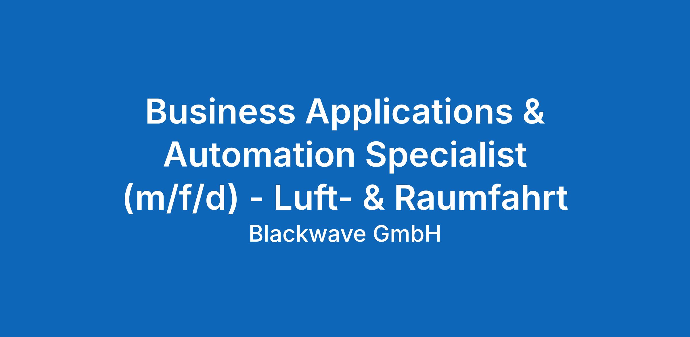 Business Applications & Automation Specialist (m/f/d) - Luft- & Raumfahrt