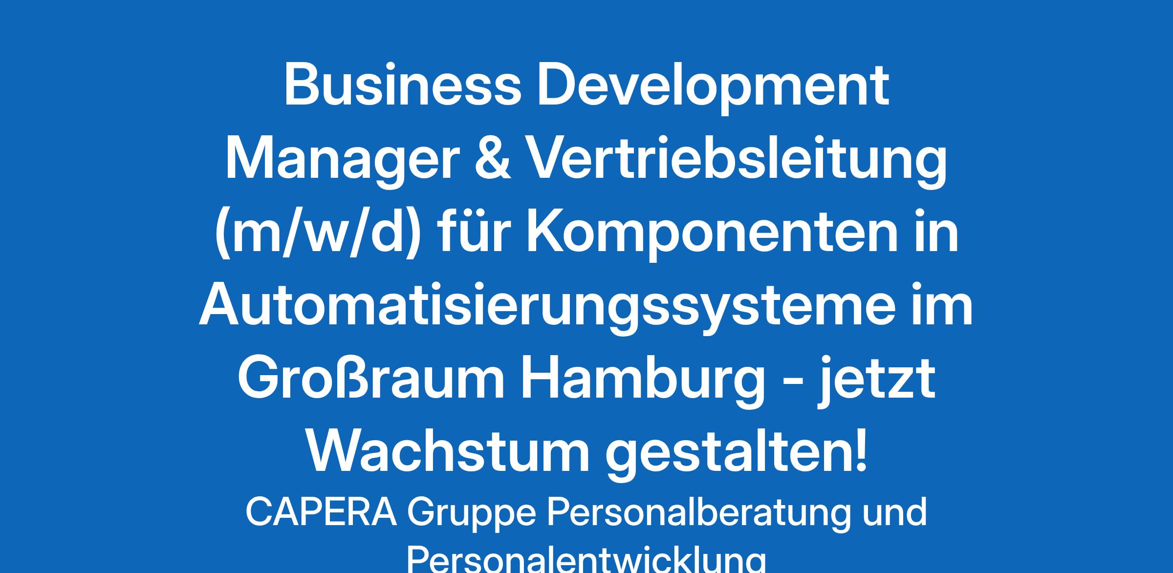 Business Development Manager & Vertriebsleitung (m/w/d) Komponenten für Automatisierungssysteme | Großraum Hamburg Sie lieben Technik, denken vom Markt her und suchen eine Rolle, in der Sie mehr bewegen – und wachsen können? Unser Kunde ist ein kleines, wirtschaftlich kerngesundes, mittelständisc... Nachhaltigkeit;Technik;Präsentation;Marktforschung;Entwicklung;Vertrieb;Kundenbegleitung;Vertriebsstrategie;Vertriebsmanagement;Verhandlungsführung;Teamleitung;Englisch;Deutsch;Technisches Produkt;Analyse;Vertrieb;Risikobereitschaft Original Stellenanzeige auf StepStone.de – Jetzt Jobagent bei StepStone einrichten und Traumjob finden! https://bit.ly/2KOagYD Mehr Informationen zu Arbeitgebern, Gehaltsdaten und Karrieretipps finden Sie auf StepStone.de