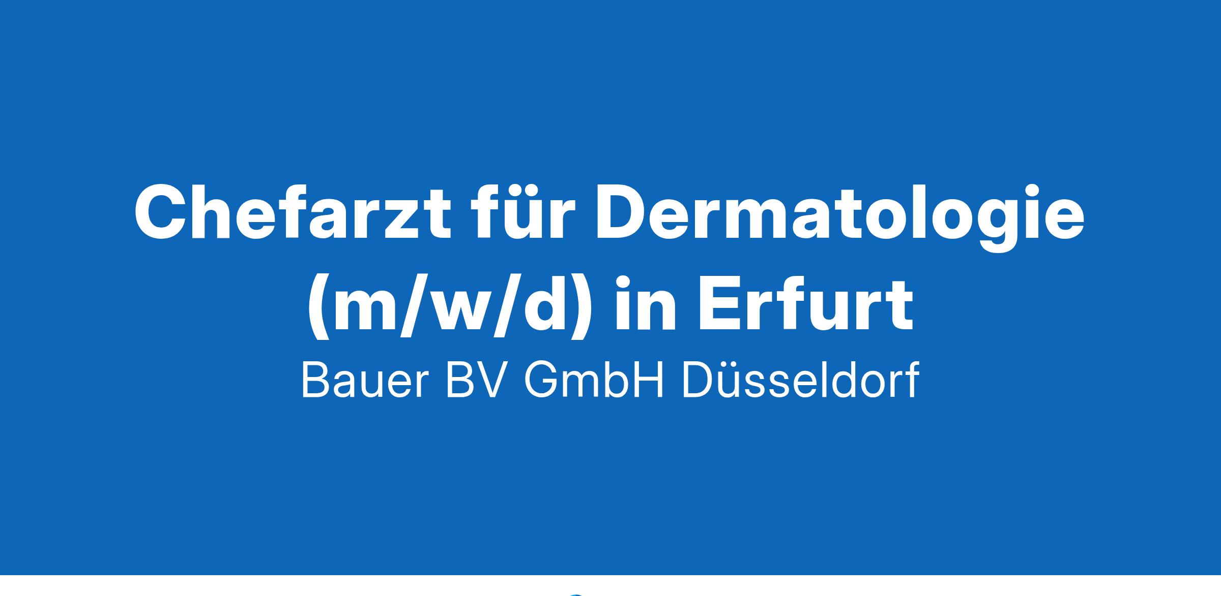 Anstellungsart(en): VollzeitIhr neuer Arbeitsplatz:Akutkrankenhaus der Schwerpunktversorgung und akademisches Lehrkrankenhaus mit 600 Betten im Raum Erfurt. Die Klinik für Dermatologie bietet eine umfangreiche Palette der Behandlung von Haut- und Geschlechtskrankheiten sowie allergischen Erkrankungen. Die Klinik verfügt derzeit über rund 20 Betten, eine Vergrößerung ist geplant.Ihre Vorteile:Verantwortlicher Auf- und Ausbau der KlinikWeitreichender EntscheidungsspielraumMultiprofessionelles ArbeitsumfeldSehr guter personelle, räumliche und technisch hochwertiger AusstattungMöglichkeit der ForschungSehr attraktives GehaltUnbefristete FestanstellungIhr Profil:Facharzt für Haut- und Geschlechtskrankheiten / Dermatologie (m/w/d)Große Expertise im FachbereichFührungserfahrungEngagement und TeamfähigkeitIhr Ansprechpartner:Bauer B+V Personalberatung
