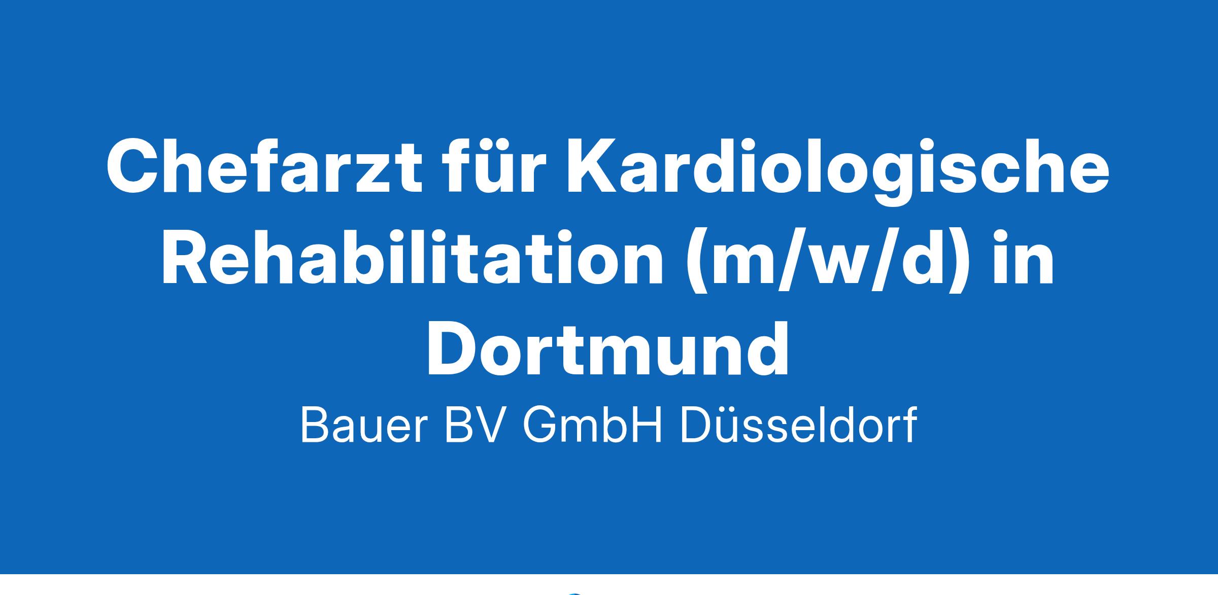 Anstellungsart(en): VollzeitIhr neuer Arbeitsplatz:Für die angegliederte Reha-Klinik für Ambulante Kardiologische Rehabilitation eines Maximalversorgers mit rund 100 Betten im Raum Dortmund wird ein Chefarzt für Kardiologie (m/w/d) gesucht.Ihre Vorteile:Interessante und anspruchsvolle TätigkeitLeitung des RehabilitationsteamsFamiliäres Umfeld und eine wertschätzende AtmosphäreFreundliches und engagiertes TeamAttraktive VergütungUnbefristete Festanstellung mit langfristiger PerspektiveIhr Profil:Facharzt für Innere Medizin und Kardiologie (m/w/d)Zusatzbezeichnung Rehabilitationswesen oder SozialmedizinBerufserfahrung im Bereich Kardiologie und RehabilitationSoziale Kompetenz, Engagement und ZuverlässigkeitIhr Ansprechpartner:Bauer B+V Personalberatung