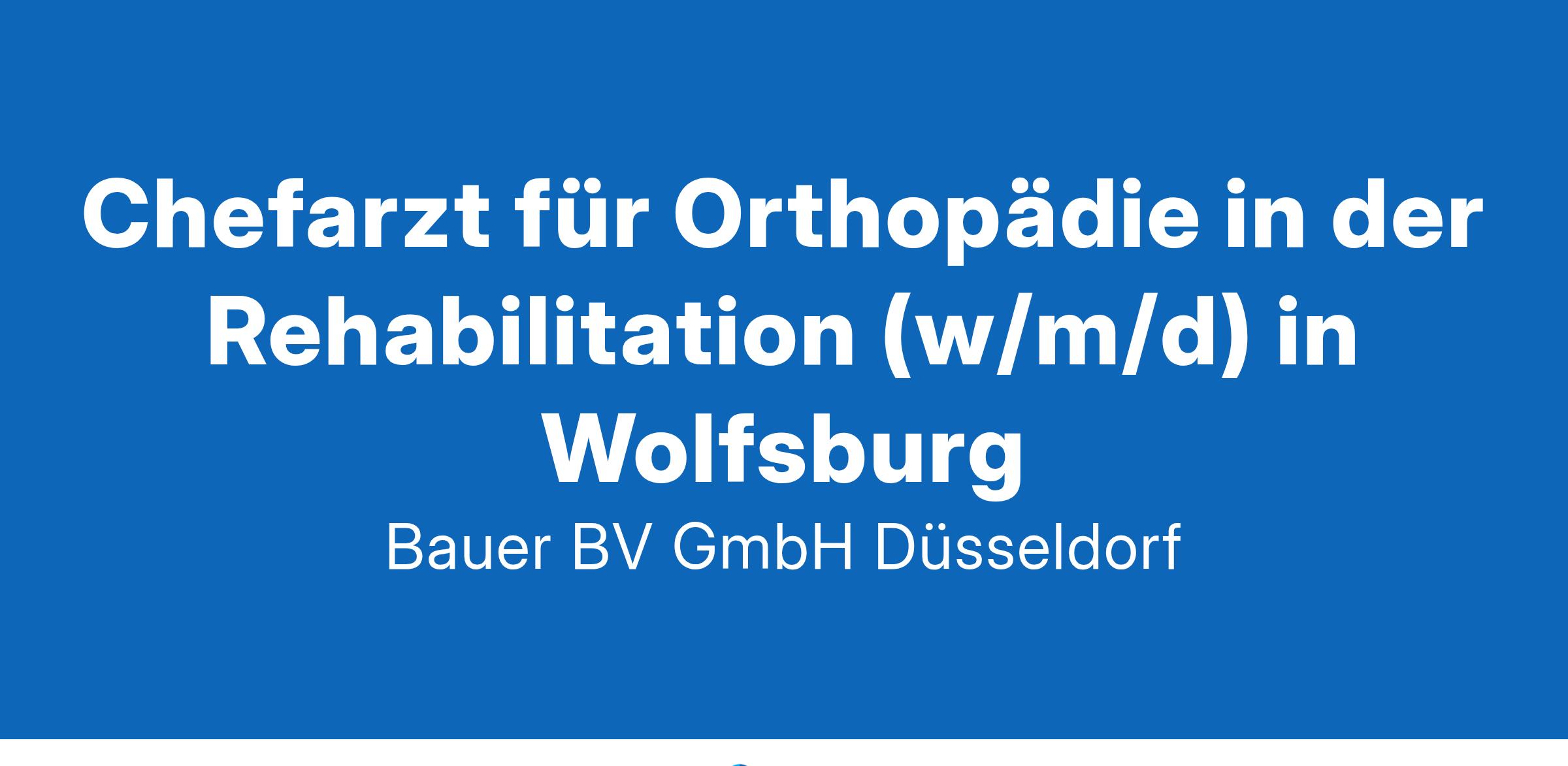Anstellungsart(en): VollzeitIhr neuer Arbeitsplatz:Ambulante Rehaeinrichtung mit Standorten in ganz Deutschland. Für den Standort in der Region Wolfsburg wird ein erfahrener Chefarzt (m/w/d) für Orthopädie gesucht.Ihre Vorteile:Verantwortungsvolle AufgabeDurchführung von Aufnahme- und Entlassungsuntersuchungen sowie VisitenLeiten von Seminaren und VorträgenZusammenarbeit mit den Kolleg*innen im interdisziplinären TeamFlexible ArbeitsmodelleWeiterentwicklung durch FortbildungstageAttraktive Vergütung inkl. betrieblicher AltersvorsorgeUnbefristete FestanstellungIhr Profil:Facharzt für Orthopädie und Unfallchirurgie (m/w/d)Fundierte Kennztnisse im FachbereichGerne Zusatzbezeichnung Sozialmedizin oder RehabilitationswesenEngagement und TeamfähigkeitIhr Ansprechpartner:Bauer B+V Personalberatung