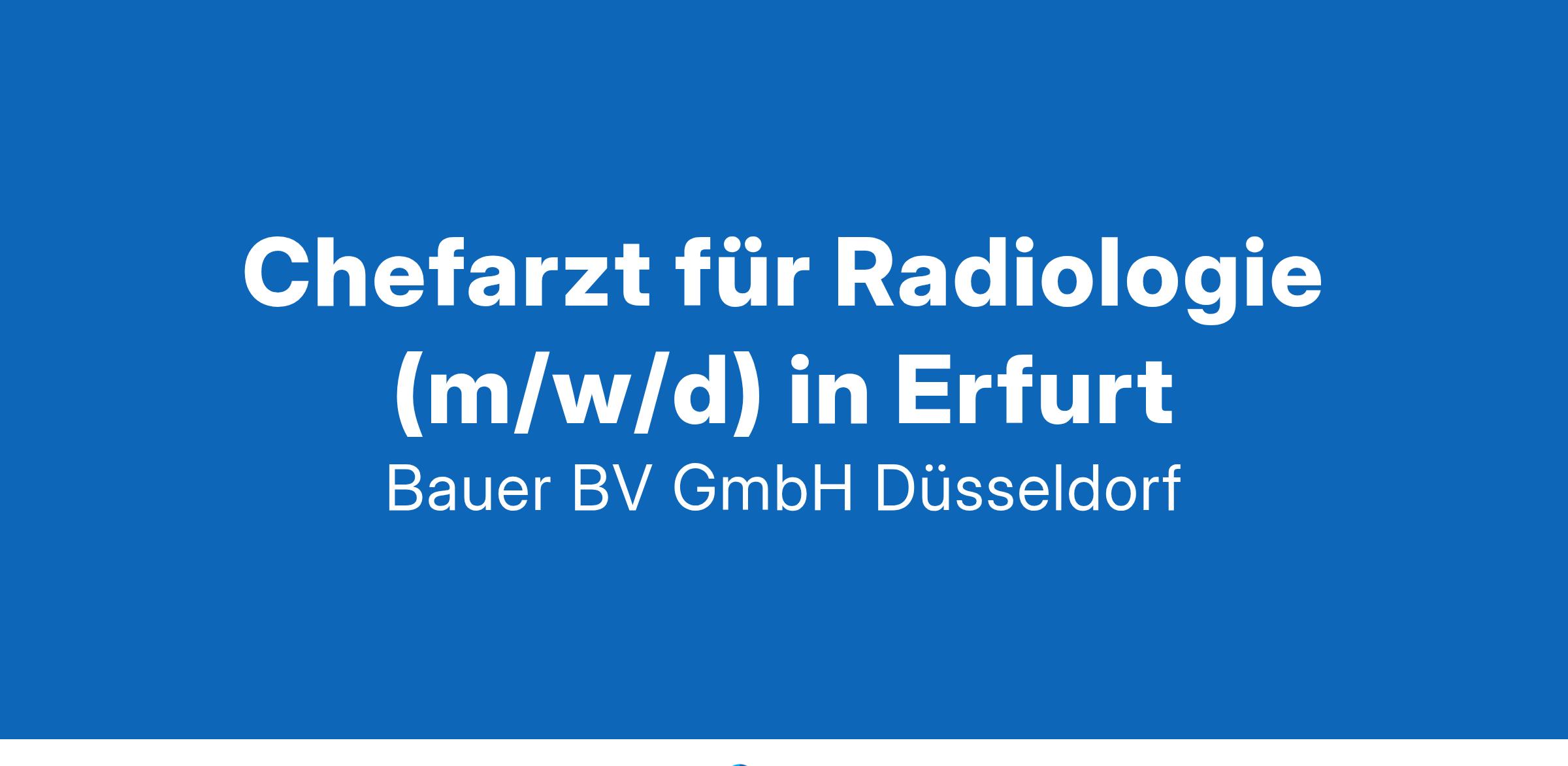 Anstellungsart(en): VollzeitIhr neuer Arbeitsplatz:Akademisches Lehrkrankenhaus mit rund 450 Betten im Raum Erfurt. Das standortübergreifende Klinik für diagnostische Radiologie verfügt über konventionelle und kombinierte Röntgenarbeitsplätze, Spiral-CT (16 Zeilen), Mammografiegeräte einschließlich Stereotaxieeinheit, moderne GE-Ultraschallgeräte sowie über zwei moderne offene MRT (1,0-Tesla).Ihre Vorteile:Moderne Klinik mit guter technischer AusstattungAttraktiv gelegene KlinikVerantwortungsvolle und vielseitige AufgabenLeitung des Institutes mit zwei StandortenProfessionelle PatientenversorgungAnleitung und Planung der Weiterbildung des professionellen ÄrzteteamsGroßer HandlungsspielraumFreundliches und engagiertes TeamAttraktive VergütungUnbefristete FestanstellungIhr Profil:Facharzt für Radiologie (m/w/d)Expertise in der interventionellen Radiologie sowie der gesamten Mamma-DiagnostikGerne Kenntnisse in der NeuroradiologieFührungserfahrungenEngagement und TeamfähigkeitIhr Ansprechpartner:Bauer B+V Personalberatung