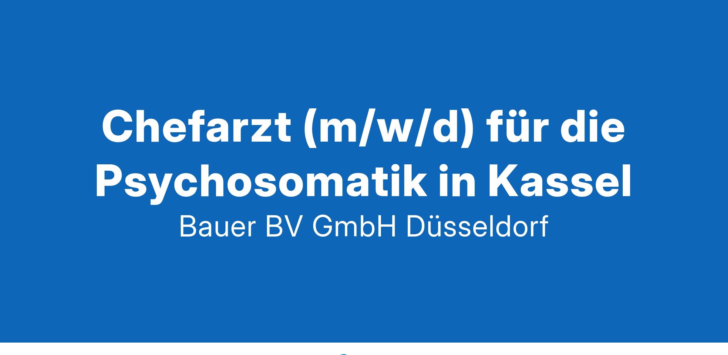 Anstellungsart(en): VollzeitIhr neuer Arbeitsplatz:Rehabilitationsklinik mit den Fachbereichen für Psychosomatik, Orthopädie, Innere Medizin / Kardiologie und Neurologie mit 520 Betten im Raum Kassel. In der Klinik wird ein breit gefächertes psychosomatisches Krankheitsspektrums behandelt, dass sich neben Verhaltenstherapie und tiefenpsychologischer Therapie durch ein zusätzliches reichhaltiges arbeits- und erlebnispädagogisches Angebot auszeichnet.Ihre Vorteile:Attraktiver und verantwortungsvoller Arbeitsplatz mit hohem GestaltungspotentialUnterstützung eines breit aufgestellten interdisziplinären TeamsAktive Weiterentwicklung der KlinikLeistungsgerechte Vergütung mit zusätzlichen ArbeitgeberleistungenGeregelte Arbeitszeiten und umfassende Möglichkeiten zur Fort- und WeiterbildungIhr Profil:Facharzt (m/w/d) für Psychosomatische Medizin und Psychotherapie oder Facharzt für Psychiatrie und PsychotherapieOptimalerweise Erfahrungen in der medizinisch-therapeutischen RehabilitationÖkonomisches Denken und erste Kenntnisse im Qualitäts- und ProzessmanagemenIdealerweise Führungs-, Ausbildungs- und ManagemterfahrungIhr Ansprechpartner:Bauer B+V Personalberatung