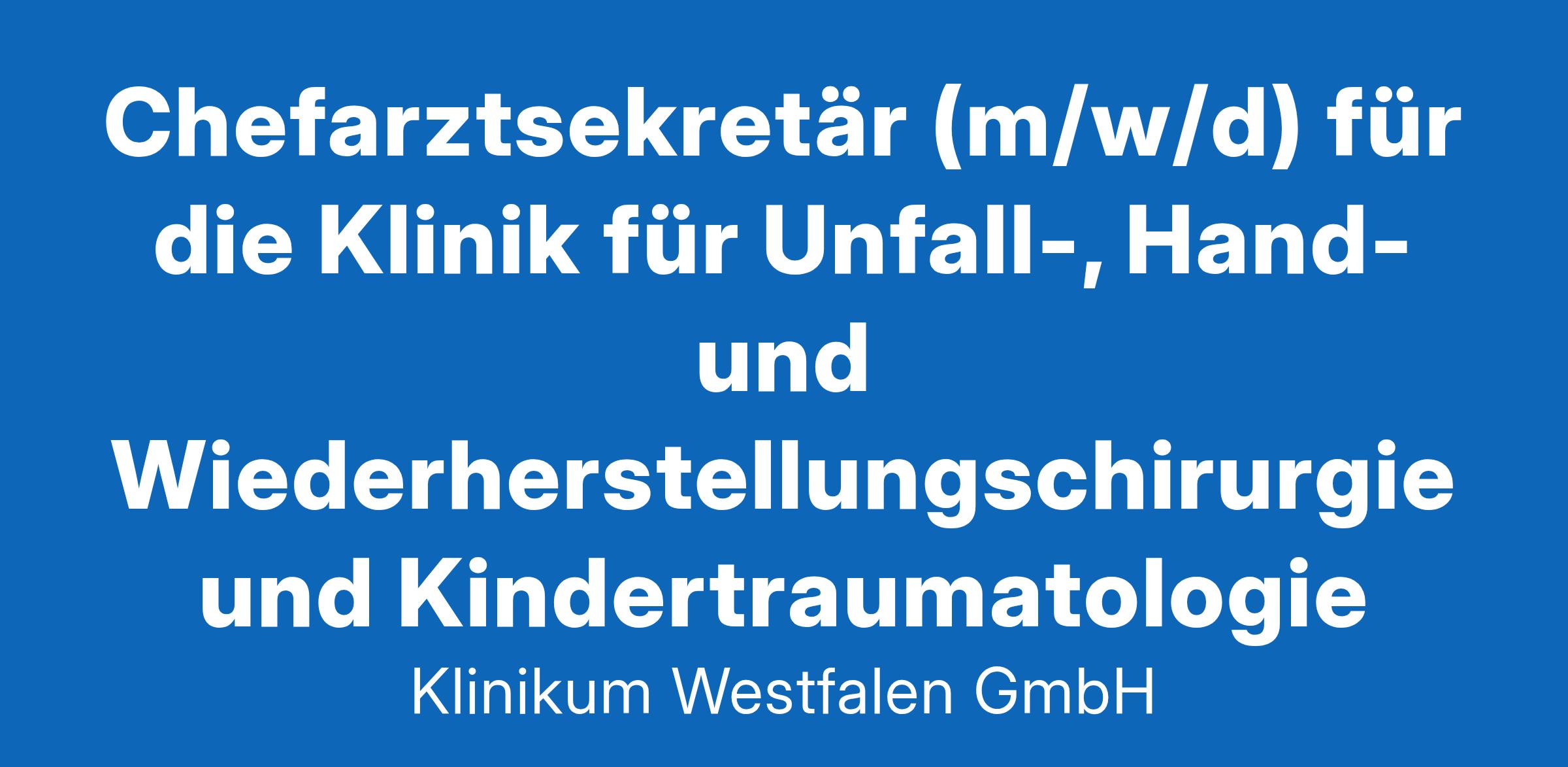 Chefarztsekretär (m/w/d) für die Klinik für Unfall-, Hand- und Wiederherstellungschirurgie und Kindertraumatologie