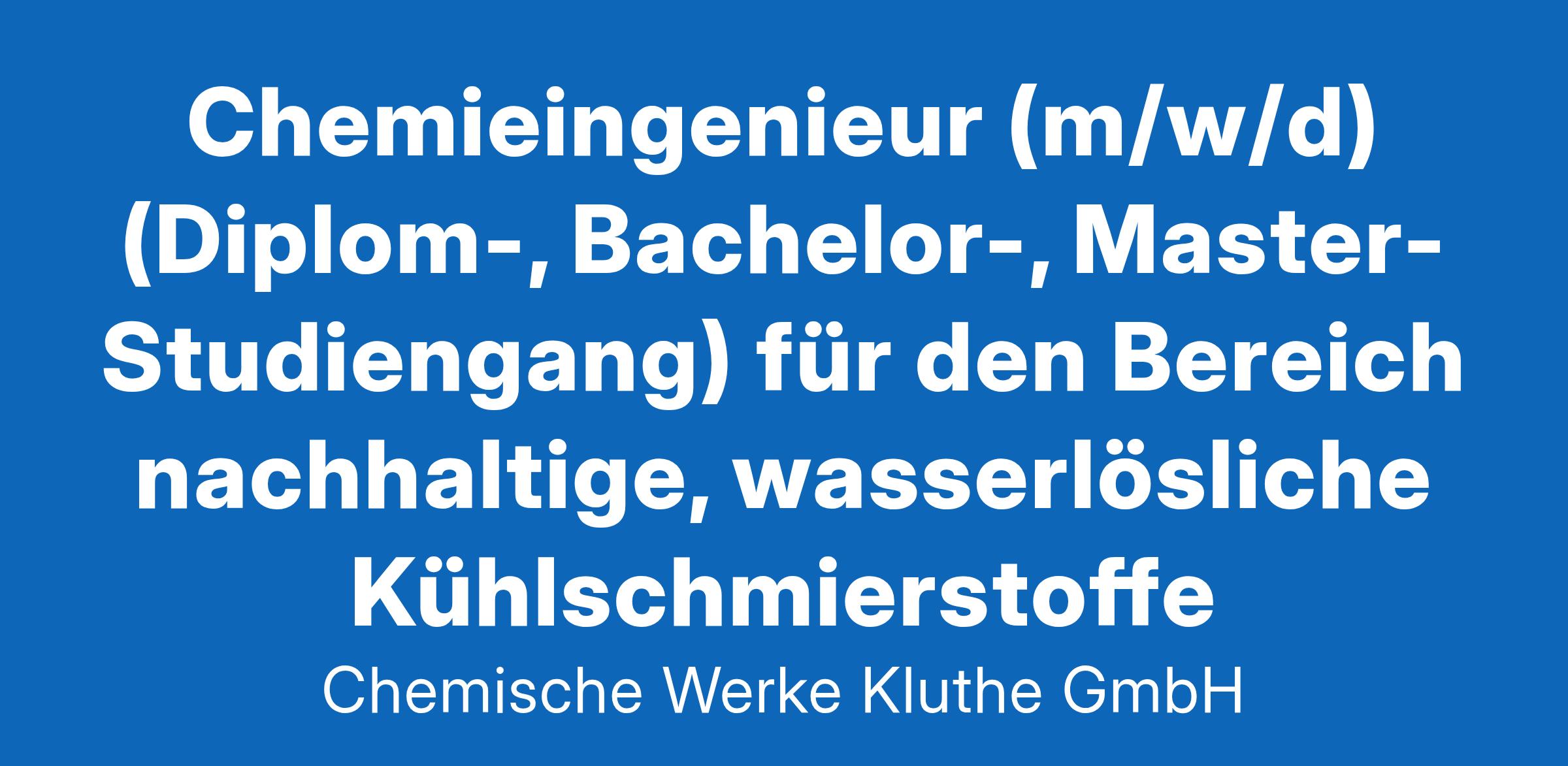 Chemieingenieur (m/w/d) (Diplom-, Bachelor-, Master-Studiengang) für den Bereich nachhaltige, wasserlösliche Kühlschmierstoffe