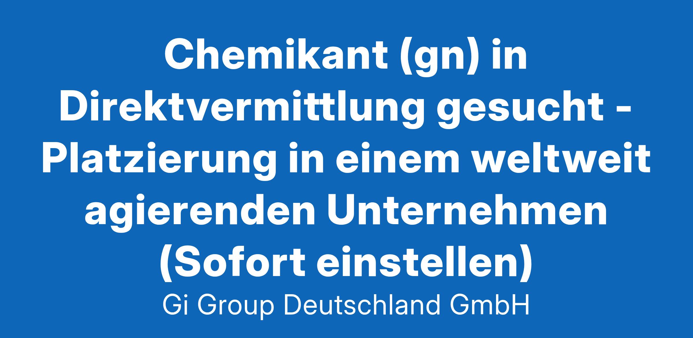 Chemikant (gn) in Direktvermittlung gesucht - Platzierung in einem weltweit agierenden Unternehmen (Sofort einstellen)