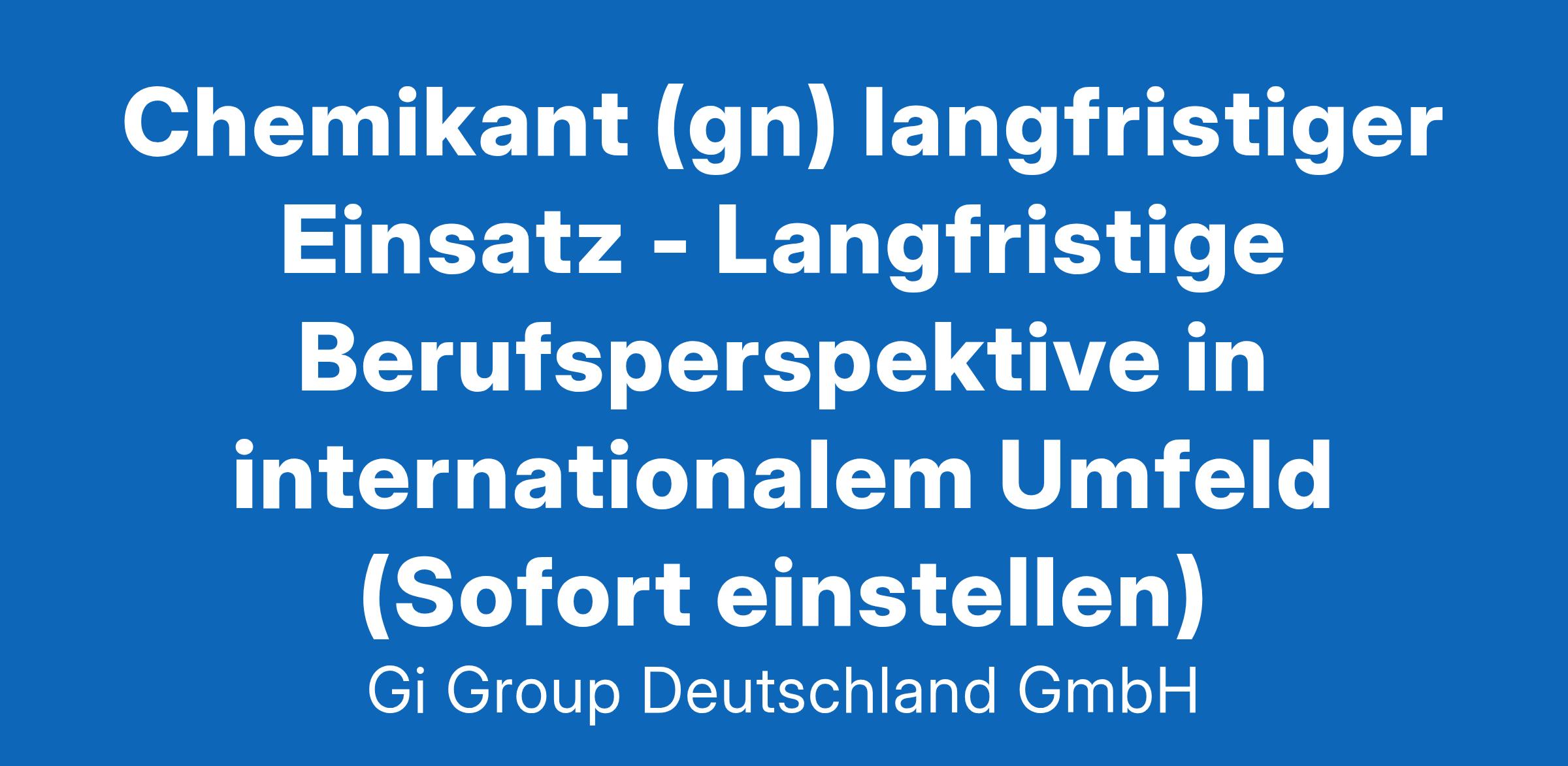 Chemikant (gn) langfristiger Einsatz ab sofort in Vollzeit in Mainz Die Gi Group ist ein international agierender Personaldienstleister mit mehr als 500 Standorten in 40 Ländern. Deine Aufgaben als Chemikant (gn) Mainz Bedienung und Überwachung von Produktionsanlagen zur Herstellung von chemischen Produkten Durchführung von Analysen und Qualitätsprüfungen gemäß interner Vorgaben Befüllen, abmessen, verpacken und einlagern von Gebinden im Rahmen der Produktionsaufträge Dokumentation von Produktions- und Prüfdaten in SAP und anderen ERP-Systemen Mitarbeit bei der Inspektion und Kontrolle von Rohstoffen, Halbfertig- und Fertigprodukten Unterstützung bei der Optimierung von Produktionsprozessen und Qualitätsstandards Dein Profil Abgeschlossene Berufsausbildung als Chemikant, Produktionsfachkraft Chemie oder in einem vergleichbaren Bereich Berufserfahrung im Produktionsumfeld, vorzugsweise im Bereich Feinchemikalien oder Referenzmaterialien Technisches Verständnis sowie Fähigkeit zur Bedienung spezialisierter Maschinen und Geräte SAP-Kenntnisse und Erfahrung mit Handscannern von Vorteil Gewissenhaftigkeit und Teamfähigkeit; Bereitschaft zur kontinuierlichen Weiterbildung Unser Angebot Eine herausfordernde und vielseitige Tätigkeit mit Schwerpunkt auf chemisch-technischen und produktionsbezogenen Aufgaben Attraktive Vergütung nach GVP-Tarifvertrag Einen langfristigen Einsatz in einem unserer top-Kundenunternehmen Zahlreiche Mitarbeitervorteile in Form von Corporate Benefits Deine Bewerbung als Chemikant Für Deine Bewerbung als Chemikant (gn) Mainz klicke bitte einfach auf „Jetzt bewerben“. Dort kannst Du Deine Kontaktdaten eingeben sowie Deinen Lebenslauf und Deine Bewerbungsunterlagen hochladen. Du benötigst dafür nur ca. 1 Minute. Dein zuständiger Personaldisponent wird sich bei Dir schnellstmöglich melden. Gerne kannst Du uns auch Deine Bewerbungsunterlagen per E-Mail zusenden. Wir freuen uns auf Deine Bewerbung! Unsere Stellenangebote richten sich an Arbeitssuchende jeglichen Geschlechts. (gn) = geschlechtsneutral. Kontakt Jule Marie Bello