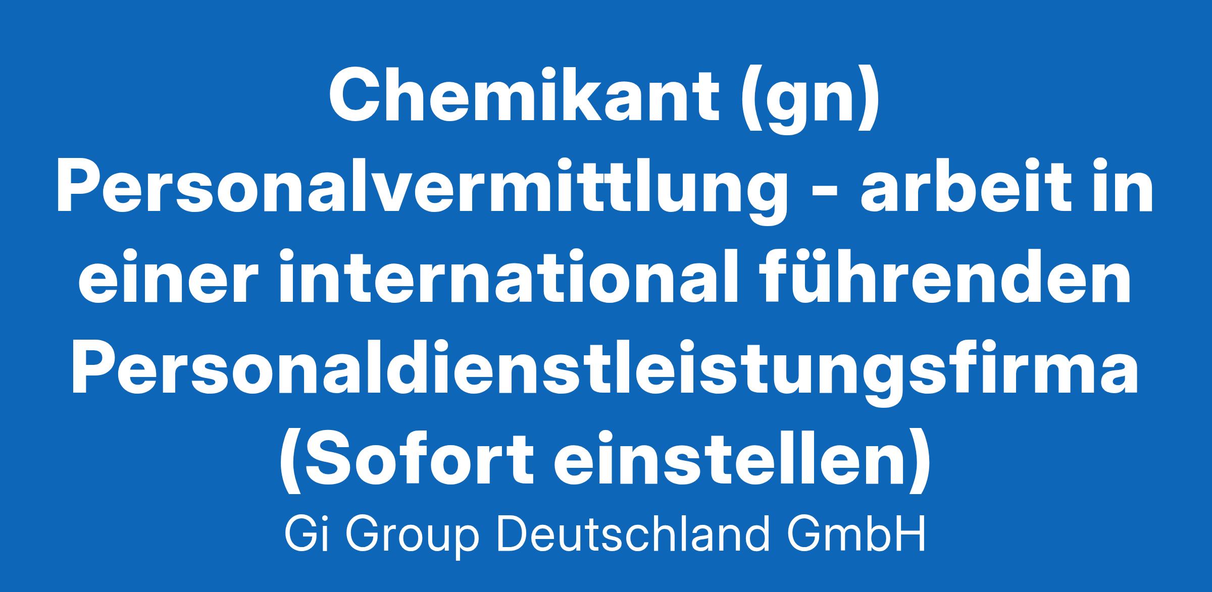 Chemikant (gn) Personalvermittlung - arbeit in einer international führenden Personaldienstleistungsfirma (Sofort einstellen)