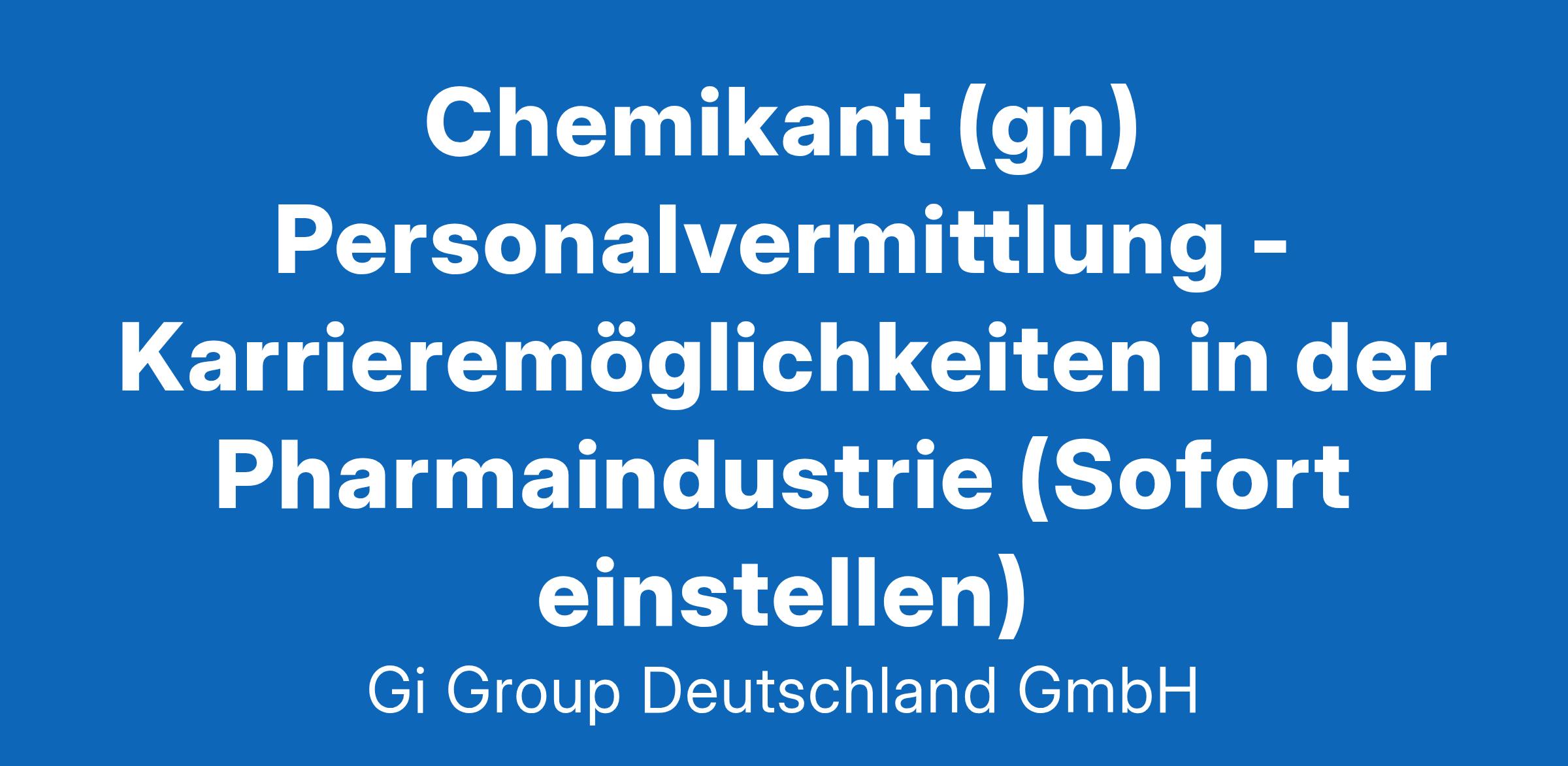 Chemikant (gn) Personalvermittlung - Karrieremöglichkeiten in der Pharmaindustrie (Sofort einstellen)