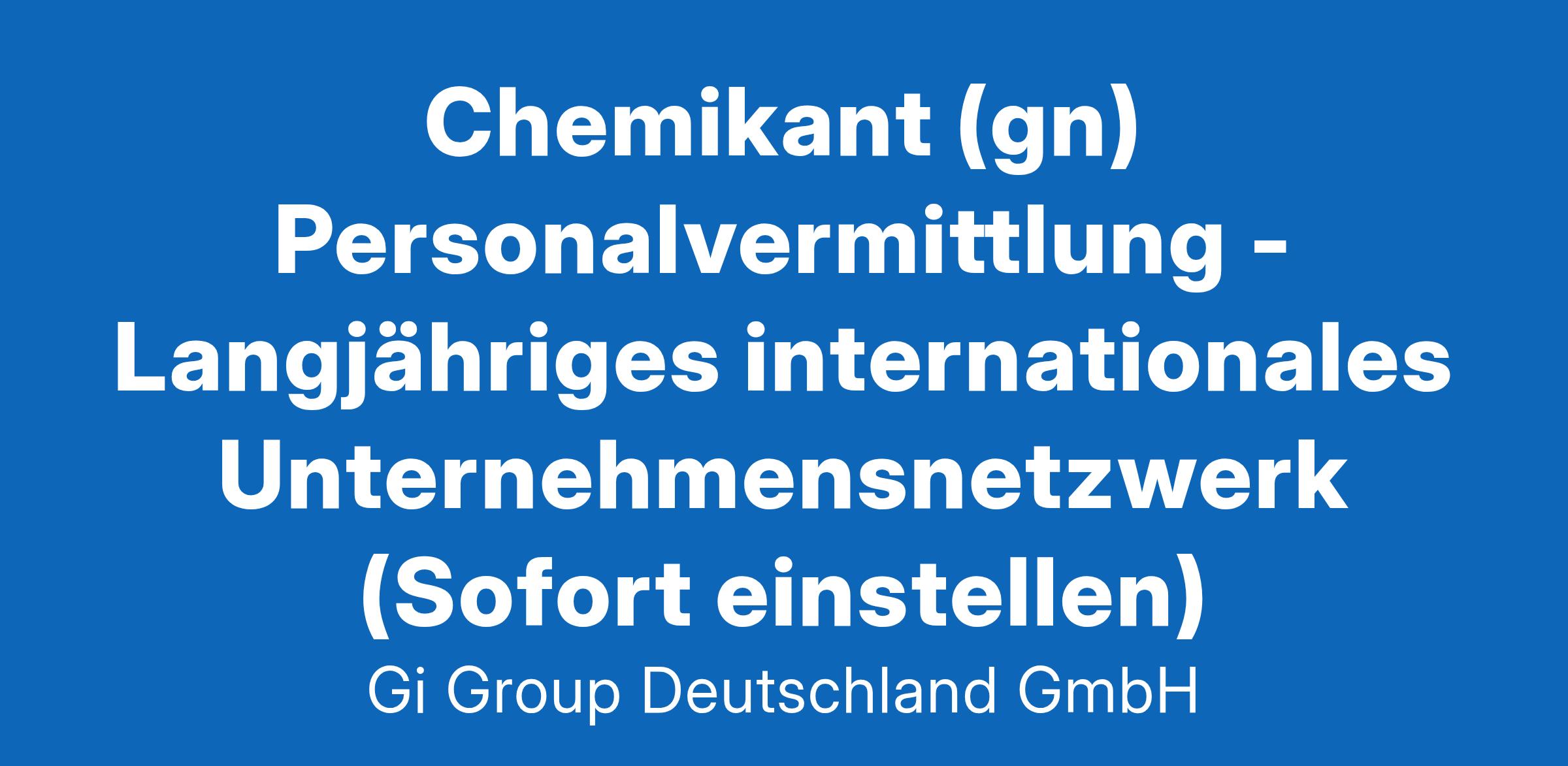 Chemikant (gn) Personalvermittlung - Langjähriges internationales Unternehmensnetzwerk (Sofort einstellen)