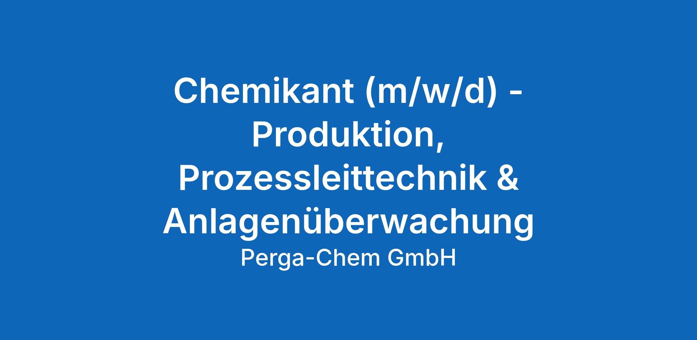 Chemikant (m/w/d) - Produktion, Prozessleittechnik & Anlagenüberwachung