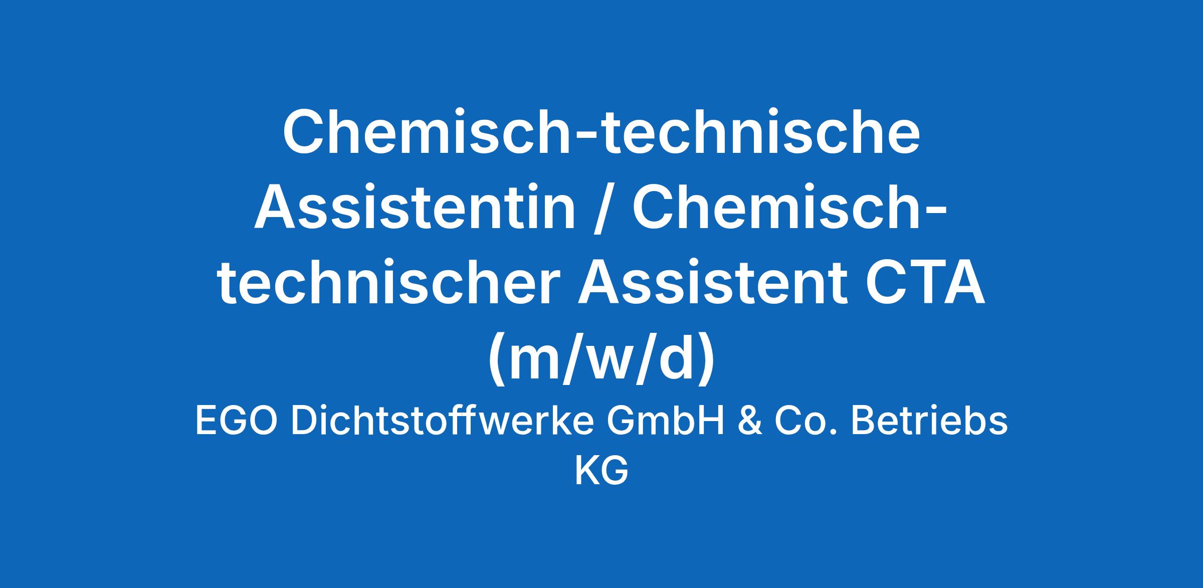 Chemisch-technische Assistentin / Chemisch-technischer Assistent CTA [m/w/d]