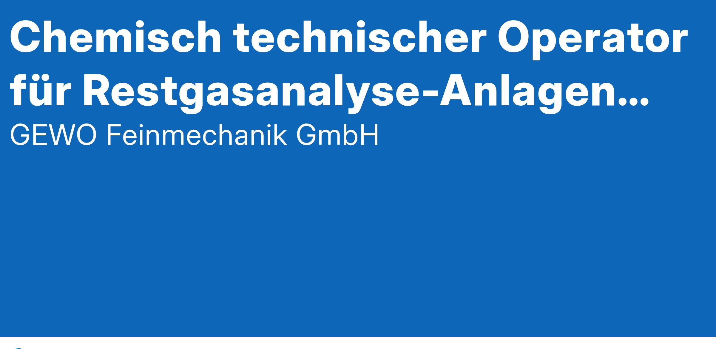 Chemisch technischer Operator für Restgasanalyse-Anlagen (m/w/d)