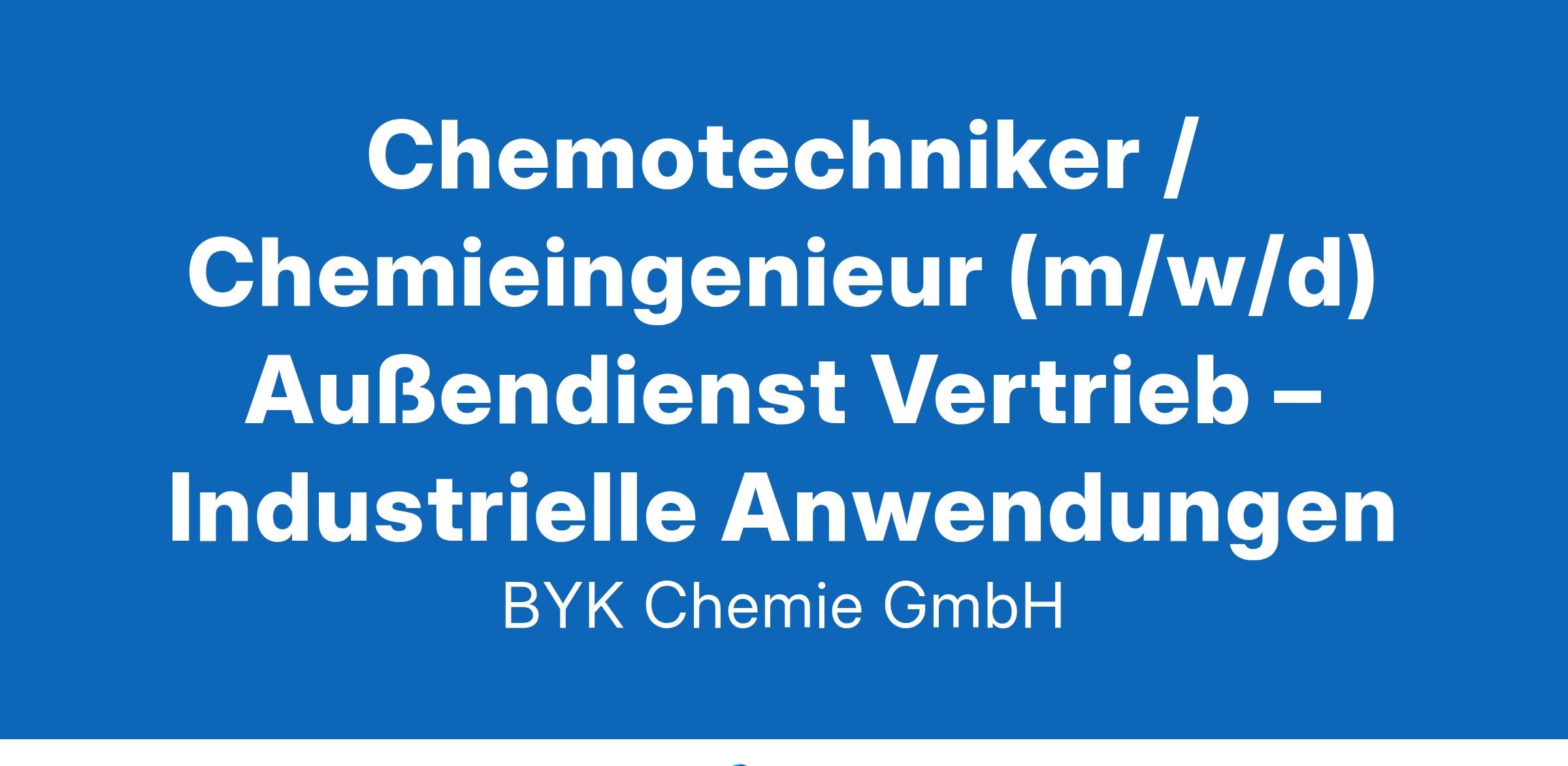BYK verfügt über ein globales Netz von Niederlassungen und beschäftigt weltweit mehr als 2.500 Mitarbeiterinnen und Mitarbeiter. Wesel ist mit rund 1.000 Mitarbeiterinnen und Mitarbeitern der größte Standort von BYK und besteht seit 1962. Wir bieten Arbeitsplätze und Ausbildungsberufe in den Bereichen Produktion, Labor, IT und Verwaltung. BYK produziert Additive für die Lack-, Druckfarben- und Kunststoffindustrie. Unsere Additive werden in Wesel hergestellt, geprüft und zum Versand in das vollautomatische Hochregallager in Emmelsum transportiert. Das Unternehmen hat in den vergangenen Jahren einen dreistelligen Millionenbetrag in den Weseler Standort investiert – unter anderem in das weltweit größte digitale Labor und in ein preisgekröntes Design-Bürogebäude. Chemotechniker / Chemieingenieur (m/w/d) Außendienst Vertrieb – Industrielle Anwendungen