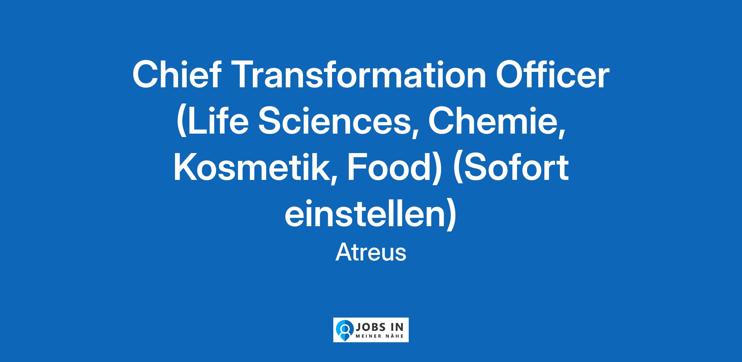 Chief Transformation Officer (CTO) im Bereich Life Sciences, Chemie, Kosmetik oder der Lebensmittelbranche Chief Transformation Officer (CTO) im Bereich Life Sciences, Chemie, Kosmetik oder der Lebensmittelbranche