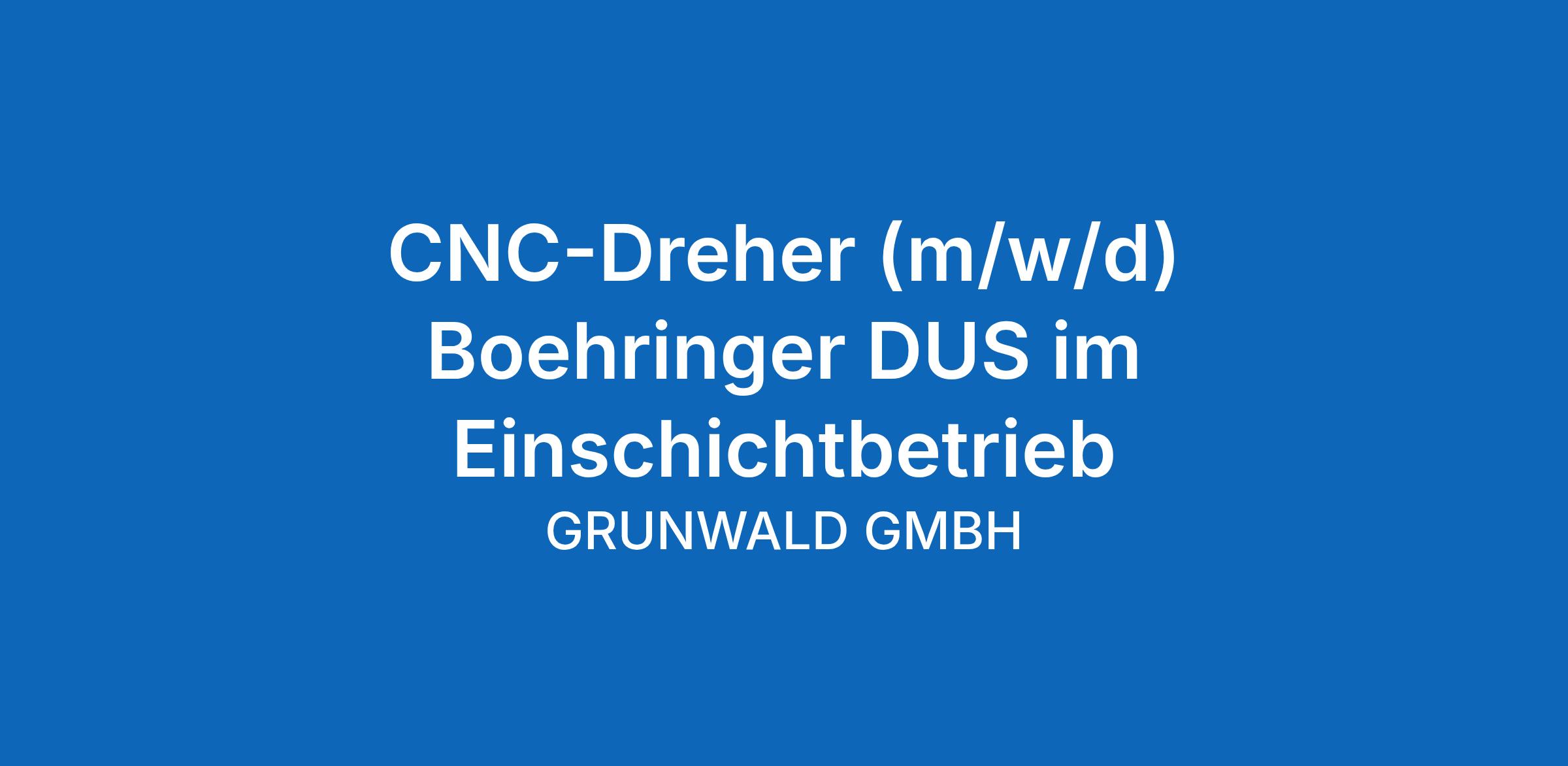 CNC-Dreher (m/w/d) Boehringer DUS im Einschichtbetrieb