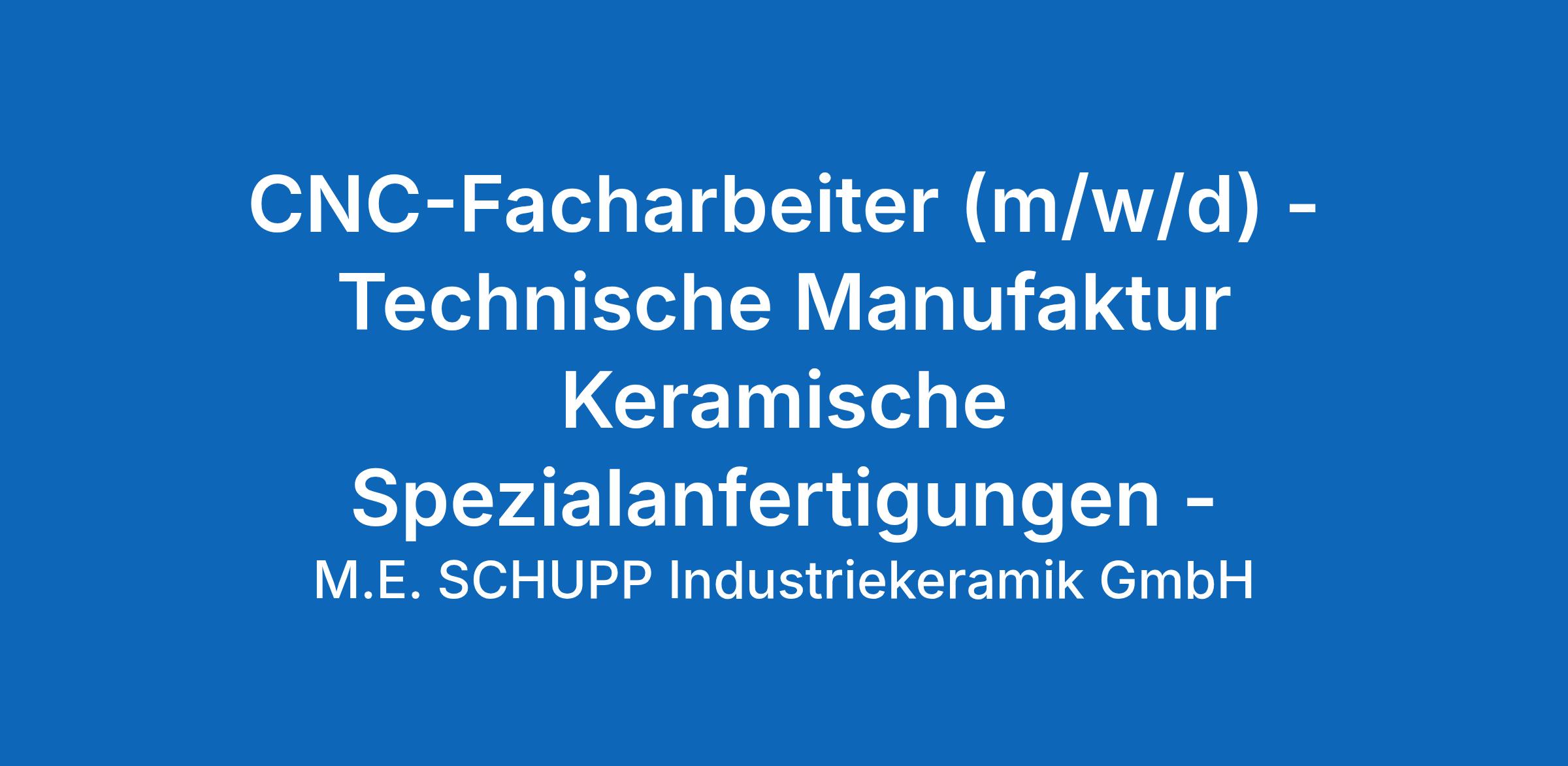CNC-Facharbeiter (m/w/d) – Technische Manufaktur Keramische Spezialanfertigungen - Vollzeit (40 St./Woche)