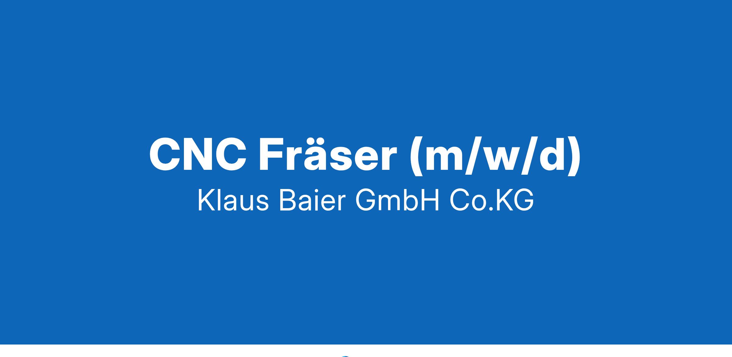 Ob Brennstoffzelle oder Backofenschiene: „Wir sind überall!“ CNC Fräser m/w/d Weitere Informationen auf: www.klausbaier.de