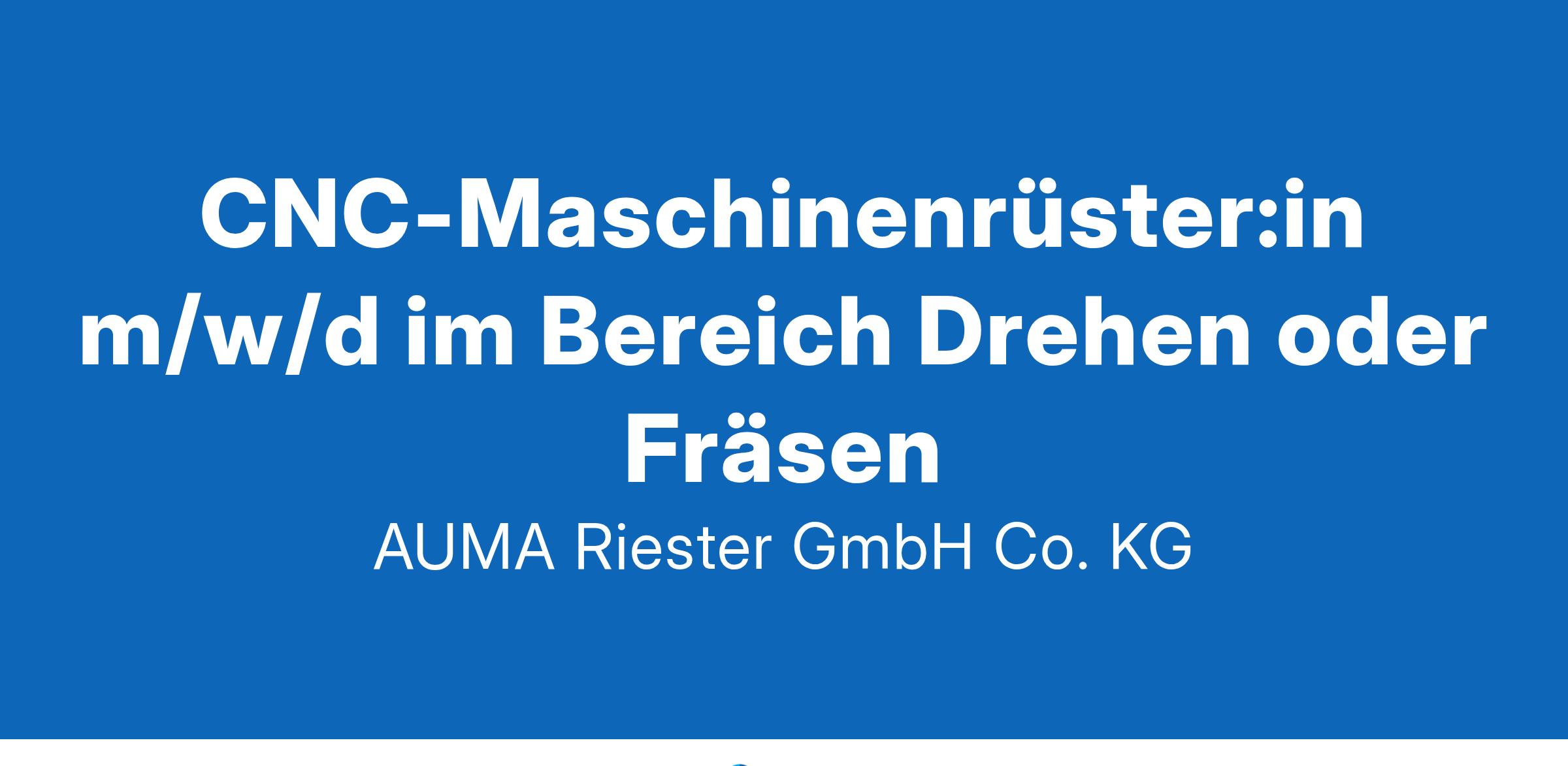 AUMA – ein innovatives, mittelständisches Familienunternehmen mit Hauptsitz in Müllheim i.M. – entwickelt, produziert und vertreibt seit 60 Jahren elektrische Stellantriebe und Armaturengetriebe für die verschiedensten Branchen wie z.B. Wasser- und Energiewirtschaft. Mit weltweit 2800 Mitarbeiter:innen zählt AUMA zu den Weltmarktführern. Wir sichern unsere Eigenständigkeit und Wettbewerbsfähigkeit durch innovative Lösungen auf allen Geschäftsfeldern. Wir engagieren uns für das Wohlergehen unserer Mitarbeiter:innen und übernehmen Verantwortung für die Gesellschaft mit Projekten für soziale, umwelttechnische und humanitäre Belange. Folgende Stelle möchten wir zum nächstmöglichen Zeitpunkt besetzen: CNC-MASCHINENRÜSTER:IN M/W/D IM BEREICH DREHEN ODER FRÄSEN Müllheim i. M. bei Freiburg Vollzeit Schichtbetrieb (verschiedene Schichtmodelle) Produktion – Zerspanung Sind Sie motiviert, in einem modernen Produktionsumfeld im Teamwork zu arbeiten? Legen Sie Wert auf Genauigkeit in Ihrer Arbeit und packen mit Begeisterung an? Dann ist unsere Position als CNC-Maschinenrüster:in genau das Richtige! In dieser Rolle arbeiten Sie eng mit Ihren Kolleg:innen zusammen, um die pünktliche und qualitativ hochwertige Fertigung unserer Bauteile sicherzustellen. Ihre Aufgaben Sie produzieren geometrisch anspruchsvolle Bauteile Sie sind für das Rüsten von Bearbeitungsmaschinen und Automatisierungsanlagen verantwortlich Sie passen Prozessparameter und CNC-Programme an Maschinen und Anlagen an Sie stellen die Rüstabläufe für kleine und mittlere Losgrößen sicher Sie unterstützen bei der Feststellung und Beseitigung von Störungen Sie sichern die Produktionsqualität durch Prüfen und Messen der Bauteile Ihr Profil Abgeschlossene Ausbildung als Zerspanungsmechaniker:in, Werkzeugmechaniker:in, Industriemechaniker:in oder eine entsprechende Weiterqualifizierung zur CNC-Fachkraft o.Ä. Erfahrung im Rüsten von CNC-gesteuerten Maschinen Kenntnisse in der CNC-Programmierung (bevorzugt Siemens Sinumerik 840D / Fanuc) Sorgfalt sowie Qualitäts- und Kostenbewusstsein Verantwortungsbewusste Arbeitsweise und Teamorientierung Ihre Vorteile Sicherer Arbeitsplatz Tolles Team Attraktives Gehalt und viele Sozialleistungen Fachliche und persönliche Weiterentwicklungsmöglichkeiten Hansefit Zuschuss zum Betriebsrestaurant Jobticket und zentrale Lage direkt am Bahnhof u.v.m. Interesse geweckt? Dann bewerben Sie sich jetzt und werden Sie Teil unseres Teams! Bitte senden Sie Ihre Bewerbungsunterlagen inkl. Gehaltsvorstellung und Kündigungsfrist per E-Mail an jobs@auma.com. Ansprechpartnerin Katharina Kappeler Telefon +49 7631 809-1979 | E-Mail jobs@auma.com AUMA Riester GmbH & Co. KG Aumastraße 1 79379 Müllheim Telefon +49 7631 809-0