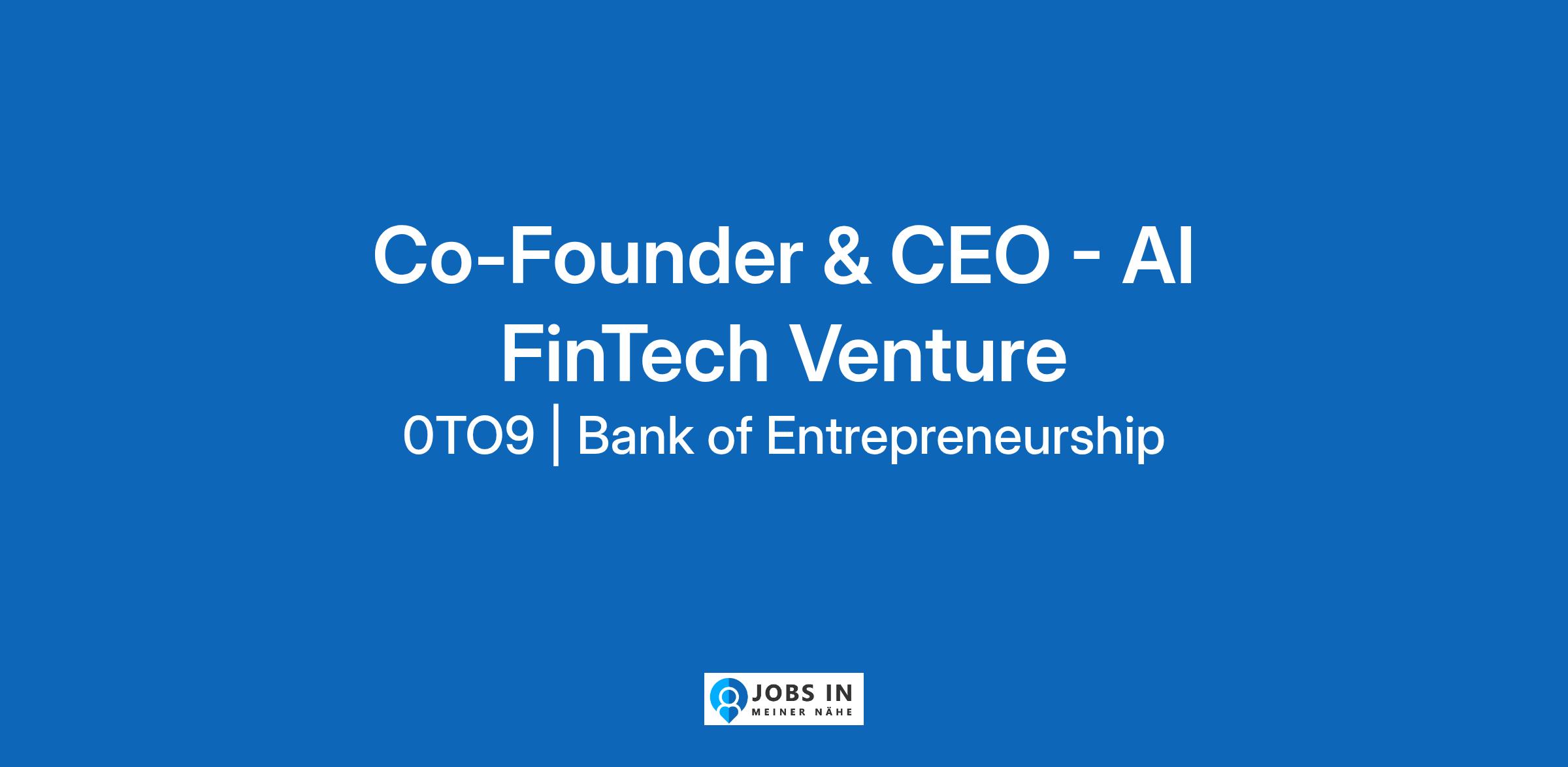 Join to apply for the Co-Founder & CEO - AI FinTech Venture role at 0TO9 | Bank of Entrepreneurship