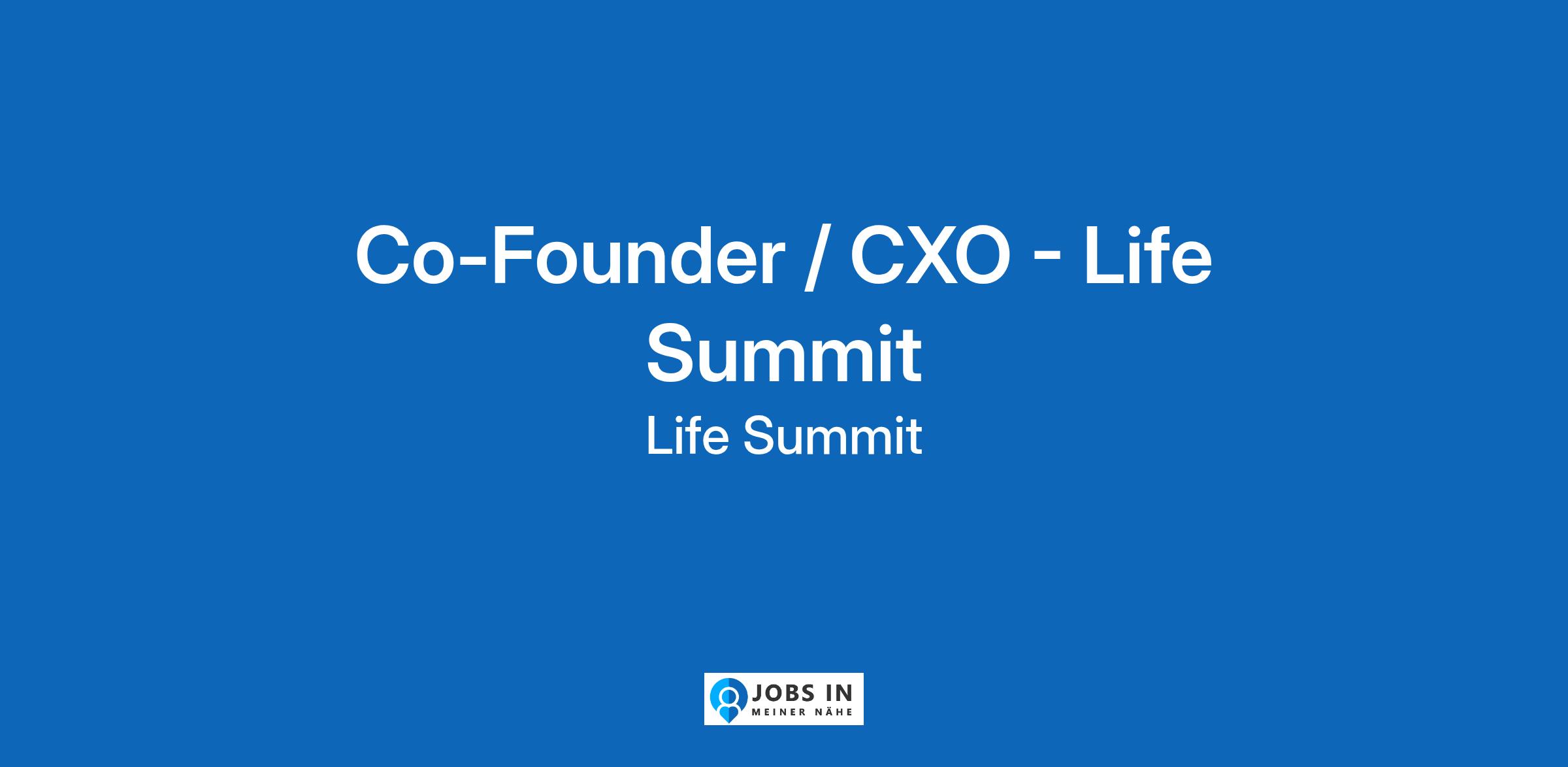Join to apply for the Co-Founder / CXO - Life Summit role at Life Summit