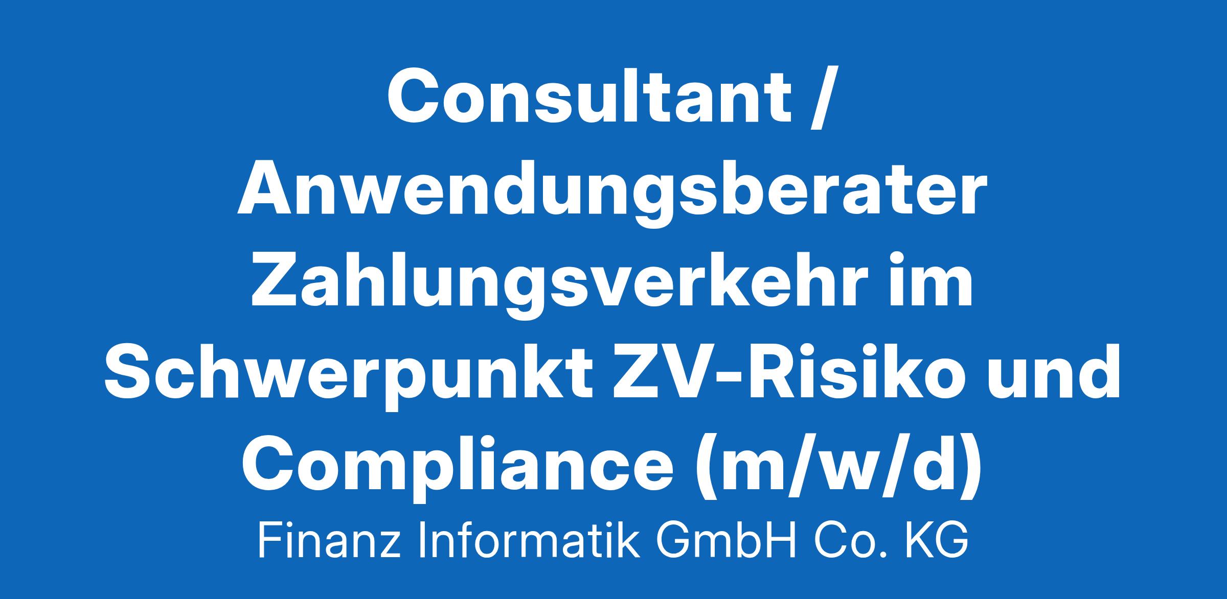 Consultant / Anwendungsberater Zahlungsverkehr im Schwerpunkt ZV-Risiko und Compliance (m/w/d)