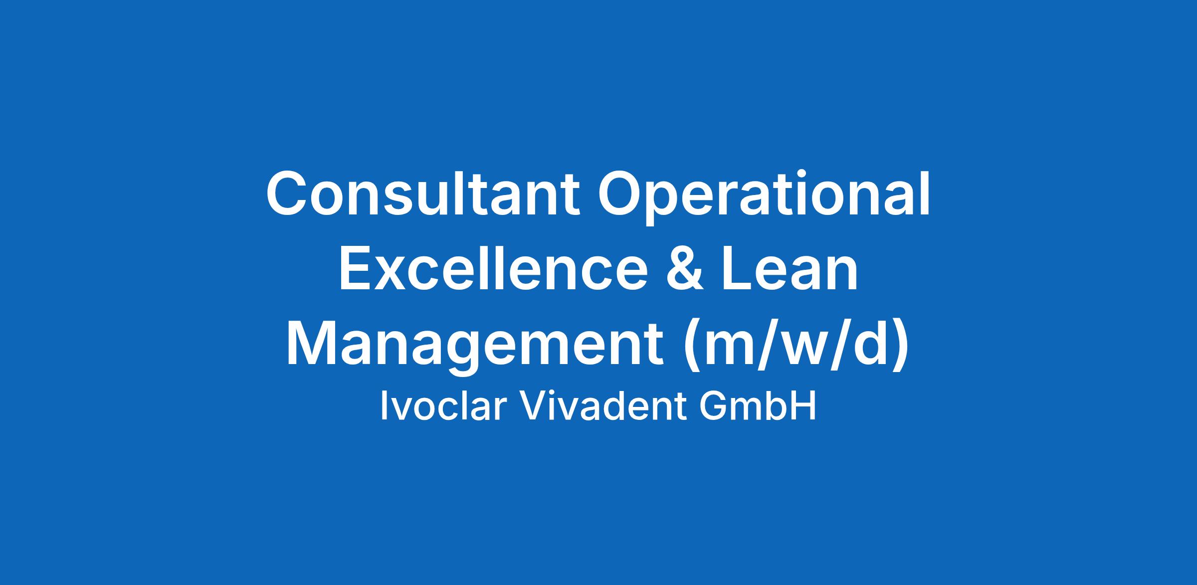 Consultant Operational Excellence & Lean Management (m/w/d)