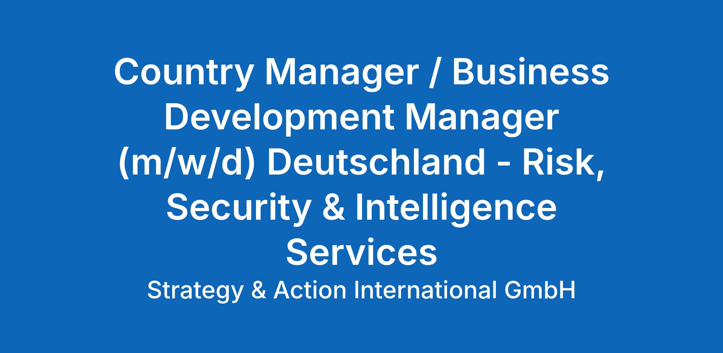 Country Manager / Business Development Manager (m/w/d) Deutschland – Risk, Security & Intelligence Services