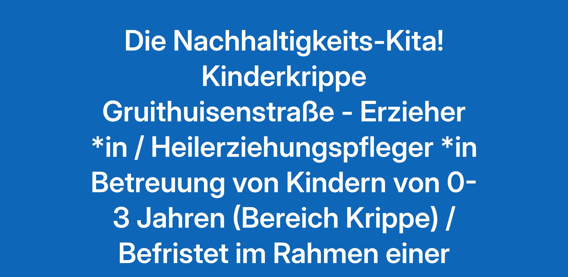 Die Nachhaltigkeits-Kita! Kinderkrippe Gruithuisenstraße - Erzieher *in / Heilerziehungspfleger *in