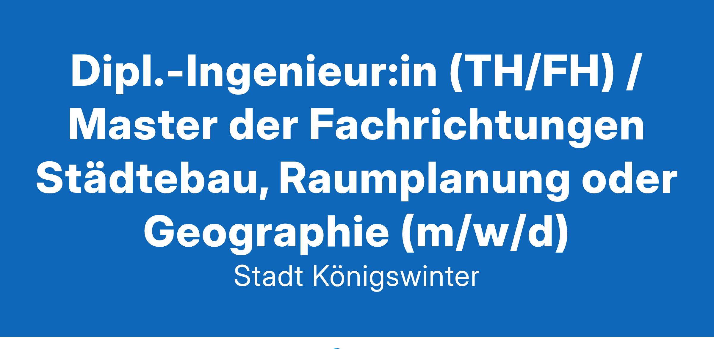 Die Stadt Königswinter mit rd. 42.000 Einwohner:innen (Rhein-Sieg-Kreis) bietet zum nächstmöglichen Zeitpunkt im Servicebereich Stadtplanung eine Stelle an als Dipl.-Ingenieur:in (TH/FH) / Master der Fachrichtungen Städtebau, Raumplanung oder Geographie Es handelt sich um eine teilbare Vollzeitstelle. Zu dem Aufgabengebiet zählt: Selbstständige Bearbeitung von Bauleitplanverfahren (Bebauungspläne, FNP-Änderungen) und Satzungen gem. § 34 BauGB Betreuung von sonstigen Planungen (Fachgutachten, Verkehrsplanungen, Städtebauliche Rahmenpläne, Strukturuntersuchungen) Betreuung und Erarbeitung von städtebaulichen Entwürfen und städtischen Entwicklungskonzepten Betreuung von vorhabenbezogenen Bebauungsplanverfahren und Vorhaben- und Erschließungsplänen Planungsrechtliche Beurteilung zu Bauvoranfragen und Bauanträgen im gesamten Stadtgebiet (§§ 30, 34, 35 BauGB) Beratung von Bürgern, Bauherren und Architekten Ihr Profil: abgeschlossenes Studium als Dipl. Ingenieur:in (TH/FH) / Master der Fachrichtungen Städtebau, Raumplanung oder Geographie Gesucht wird eine aufgeschlossene und verantwortungsbewusste Persönlichkeit mit: fundierten Fachkenntnissen im Planungsrecht, die durch entsprechende Zeugnisse nachzuweisen sind CAD-Kenntnissen (idealerweise autocad) Kreativität und Sicherheit im städtebaulichen Entwerfen einer selbständigen Arbeitsweise einer sehr guten mündlichen und schriftlichen Ausdrucksfähigkeit/Anwendung der deutschen Sprache freundlichem und sicherem Auftreten Verhandlungsgeschick und Durchsetzungsvermögen Bürgerfreundlichkeit Kenntnissen im Bereich EDV, insbesondere Microsoft Office der Fähigkeit und Bereitsschaft zur Teamarbeit Organisationstalent, Flexibilität und Belastbarkeit hohem Engagement PKW-Führerschein (Klasse III bzw. B) mehrjähriger Berufserfahrung (wünschenswert) Wir bieten Ihnen: eine Vergütung, je nach persönlicher Qualifikation bis Entgeltgruppe E 12 TVöD interessante, vielfältige und sinnstiftende Arbeit tarifkonforme Eingruppierung gute betriebliche Altersvorsorge flexible und geregelte Arbeitszeit / Vereinbarkeit von Familie und Beruf 30 Tage Urlaubsanspruch bei einer 5-Tage-Woche, zusätzlich Heiligabend und Silvester frei standortunabhängiges Arbeiten attraktive Qualifizierungs- und Aufstiegschancen wertschätzendes Miteinander Zuschuss zum Deutschlandticket Fahrrad-Leasing für Tarifbeschäftigte (m/w/d) kostenfreie Parkplätze für Mitarbeiter:innen (m/w/d) Die Stadt Königswinter fördert die Gleichstellung aller Menschen (m/w/d) und begrüßt deshalb Bewerbungen unabhängig von deren ethnischer, kultureller oder sozialer Herkunft, Alter, Religion, Weltanschauung, Behinderung oder sexueller Identität ausdrücklich. Bei entsprechendem Interesse unterstützt die Stadt auch die Mitarbeit in der Freiwilligen Feuerwehr Königswinter; ggf. kann die Aufnahme in die Tagesbereitschaft direkt erfolgen. Für Rückfragen steht Ihnen die Servicebereichsleitung, Frau Cornelia Gamm, unter der Rufnummer 02244/889-166 oder per E-Mail ( cornelia.gamm@koenigswinter.de ) gerne zur Verfügung. Haben wir Ihr Interesse geweckt? Dann bewerben Sie sich jetzt online auf unserer Homepage ( www.koenigswinter.de ) bis zum 16.02.2025!