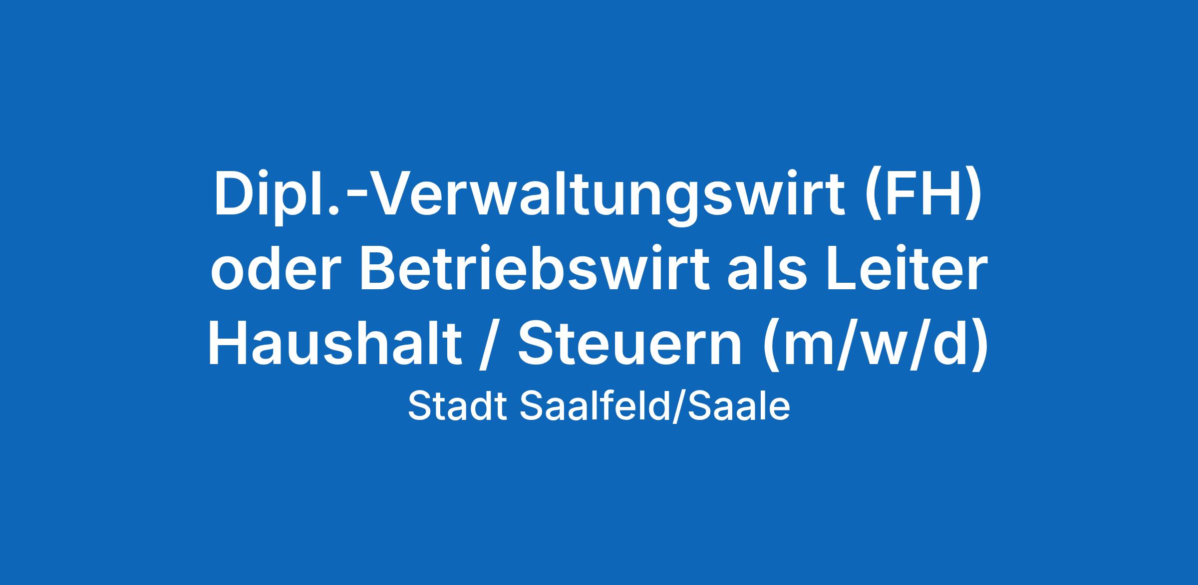 Die Stadt Saalfeld/Saale sucht eine/n Abteilungsleiter/in Haushalt/Steuern (m/w/d) ab dem 01.01.2027.