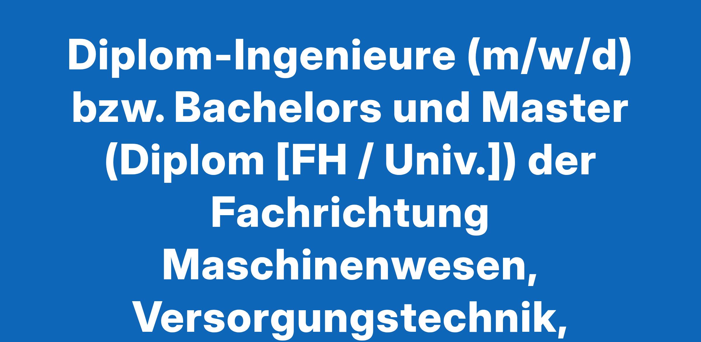 Diplom-Ingenieure (m/w/d) bzw. Bachelors und Master (Diplom [FH / Univ.]) der Fachrichtung Maschinenwesen, Versorgungstechnik, Elektrotechnik oder Gebäudetechnik