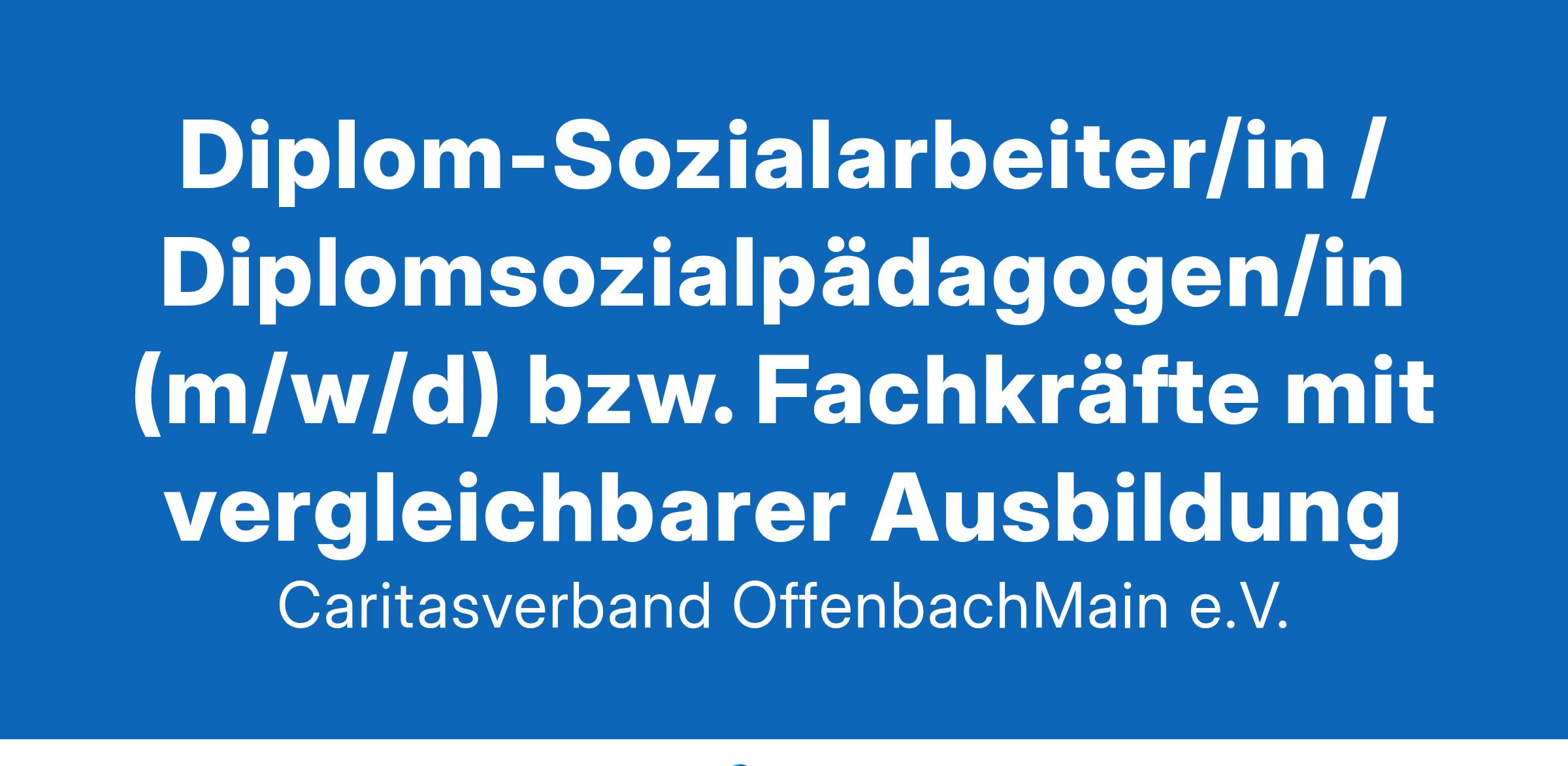 Der Caritasverband Offenbach/Main e.V. sucht ab dem 01.02.2025 DIPLOM-SOZIALARBEITER/IN / DIPLOMSOZIALPÄDAGOGEN/IN (m/w/d)