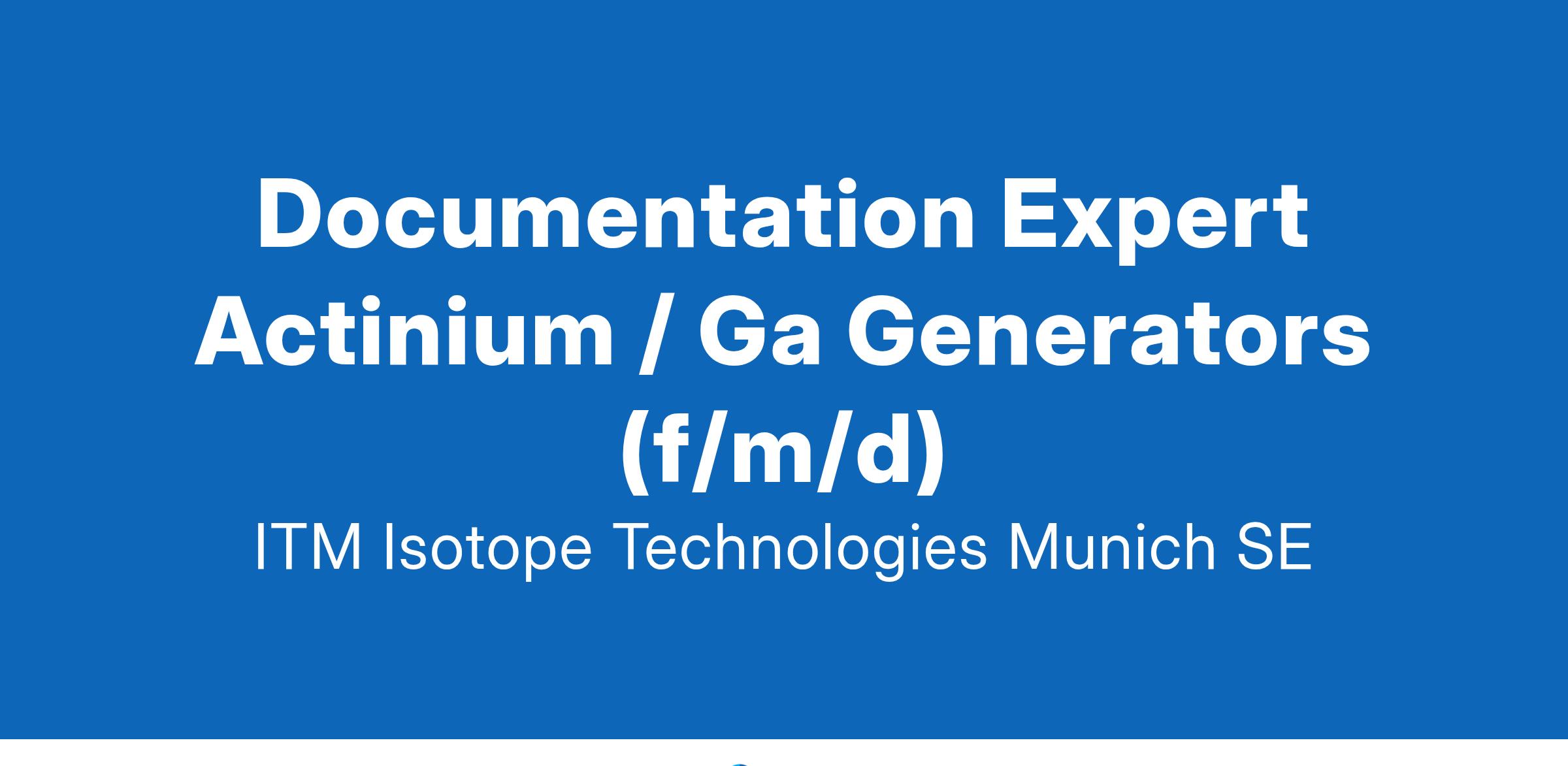 Über ITM Bei ITM Isotope Technologies Munich SE entwickeln, produzieren und vertreiben wir zielgerichtete diagnostische wie auch therapeutische Radiopharmazeutika sowie Radioisotope für die Krebsbehandlung auf globaler Ebene. Unsere Mission bei ITM besteht darin, den Behandlungserfolg und die Lebensqualität von Krebspatient*innen durch die Entwicklung von zielgerichteten Radionuklidtherapien im Bereich der Präzisionsonkologie maßgeblich zu verbessern. Zur Verstärkung unseres Teams suchen wir zum nächstmöglichen Zeitpunkt in Garching bei München vor Ort unbefristet einen Documentation Expert Actinium / Ga Generators (f/m/d) Ihre Aufgaben Dokumentenerstellung und -verwaltung gemäß der guten Dokumentationspraxis (Herstelldokumentation, Tech-Transfer-Dokumente, PQR) „Key User“ im Veeva-Dokumentenmanagementsystems Erstellung und Verwaltung von Etiketten für die Produktion „Key User“ für das eQMS-System von Veeva Ihr Profil Erfolgreich abgeschlossene Ausbildung als CTA oder B.Sc./M.Sc. in Chemie/Pharmazie o. ä. Idealerweise mehrjährige Berufserfahrung in der (radio-)chemischen bzw. pharmazeutischen Industrie Erfahrung in GMP-gerechter Arbeitsweise und Dokumentation von Vorteil Gute MS-Office-Kenntnisse (Excel, Word, Visio) Selbstständige, systematische und gewissenhafte Arbeitsweise Gute Kommunikationsfähigkeiten Hohes Maß an Teamfähigkeit und Flexibilität Sehr gute Deutsch- und Englischkenntnisse in Wort und Schrift Darauf können Sie sich freuen Spannende Herausforderungen in einem aufstrebenden und schnell wachsenden Unternehmen mit hohem Gestaltungsspielraum Eine offene Arbeitsatmosphäre in einer internationalen Unternehmenskultur mit kurzen Kommunikationswegen Umfangreiches Onboarding-Programm Zusätzliche Schichtzuschläge und attraktive Sonderzahlungen Einfach nur gutes Gehalt? Nicht bei uns! Wir bieten Ihnen zusätzlich: Mitarbeiterbeteiligungsprogramm JobRad oder Zuschuss zum Jobticket Überdurchschnittlicher Zuschuss zur betrieblichen Altersvorsorge Individuell abgestimmtes Weiterbildungsangebot (u. a. Deutsch- und Englischkurse) Angebote im Bereich Gesundheitsförderung (z.B. EGYM Wellpass, Zuschuss zum lokalen Fitnessstudio, Förderung von Sportveranstaltungen, verschiedene Lifestylecoachings) Sie besitzen diese Qualifikationen, haben die Bereitschaft, sich weiterzuentwickeln, und die Freude, ein tragender Teil unserer Zukunft zu werden? Prima. Wir sollten uns kennenlernen! Bitte teilen Sie uns bei Ihrer Bewerbung den frühesten Eintrittstermin und Ihre Gehaltsvorstellung mit. Sie können Ihren Lebenslauf auf Deutsch oder Englisch im DOCX- oder PDF-Format einreichen. Kontakt Leticia Rodríguez Melián +49 89 3298986-1706 career@itm-radiopharma.com ITM Isotope Technologies Munich SE Human Resources Walther-von-Dyck-Straße 4 85748 Garching / München, Deutschland Hinweis für Personaldienstleister Bitte beachten Sie, dass wir keine unaufgeforderten Bewerbungen oder Unterstützungsangebote akzeptieren. Die in der Ausschreibung angegebene Telefonnummer ist ausschließlich für Bewerberinnen wie auch Bewerber gedacht und soll nicht für andere Zwecke kontaktiert werden. Vielen Dank! Mehr über ITM Bei uns haben Sie die Möglichkeit, in einer internationalen Arbeitsumgebung an wegweisenden Projekten zu arbeiten, die einen bedeutenden Einfluss auf die Krebsbehandlung weltweit haben können. Wir suchen engagierte, talentierte sowie leidenschaftliche Fachkräfte, die unsere Vision teilen und dazu beitragen möchten, die Zukunft der Onkologie zu gestalten. Wenn Sie sich von dieser spannenden Herausforderung angesprochen fühlen sowie dazu beitragen möchten, unser gemeinsames Ziel zu verwirklichen, dann zögern Sie nicht und reichen Sie Ihre Bewerbung bei uns ein. Wir freuen uns auf Sie! Verschaffen Sie sich einen ersten Eindruck von ITM, unseren Standorten und unserer täglichen Arbeit. Weitere Informationen zu ITM erhalten Sie unter: www.itm-radiopharma.com