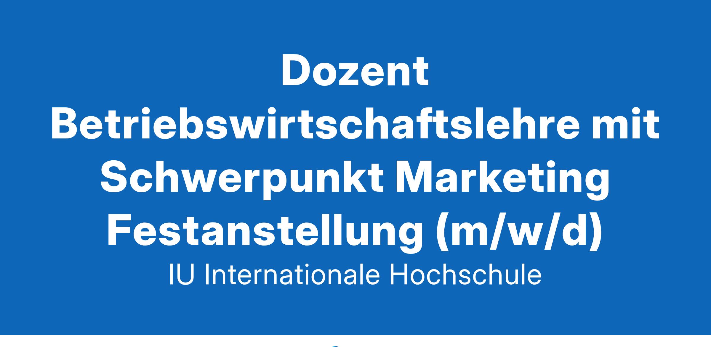 Erweitere unsere akademische Welt an unserem IU Campus am Standort Rostock in Teilzeit (12h) mit garantierten remote-Anteil ab dem 01.03.2025.Das erwartet DichDu vertrittst spezifische Fächer der Fachbereiche Betriebswirtschaftslehre und Marketing wie beispielsweise: Grundlagen im Wisschenschaftlichen Arbeiten, Grundlagen im Management, Marketing, Customer Relationship Management, Kommunikationspolitik (mehr Einblicke findest Du im Modulhandbuch).Du betreust unsere Studierenden in allen Fragen rund um die Lehrveranstaltungen und bereitest sie so auf ihre berufliche Laufbahn vor.Du leitest während der Vorlesungszeit praxisnahe Lehrveranstaltungen und Tutorien souverän vor Ort auf Deutsch und kannst in der vorlesungsfreien Zeit Arbeit von zuhause aus erledigen.Du gestaltest Lehrveranstaltungen anhand von hochwertigen Lernmaterialien, welche wir Dir zur Verfügung stellen, und führst die Vor- > Nachbereitung flexibel remote durch.Du erstellst und korrigierst Prüfungsleistungen und bist verantwortlich für die Konzeption und Evaluation von Lehrmedien (z.B. Skripte, Videos).Das bringst Du mitDu hast ein abgeschlossenes Masterstudium oder Promotion im Bereich Betriebswirtschaftslehre oder in einer Bezugs- und Nachbardisziplin mit Schwerpunkten in Marketing.Du verfügst über praktische Berufserfahrung in dem zu unterrichtenden Fachgebiet mit Kenntnissen in Marketing, Customer Relationship Management und BWL.Du konntest ggf. bereits erste Erfahrung (z.B. als Tutor, Lehrkraft, Lehrbeauftragter oder wissenschaftlicher Mitarbeitender) in der akademischen Lehre sammeln.Du bringst großes Interesse an innovativer, digitaler und moderner Bildung und hast Freude am Umgang mit Studierenden.Du verfügst über Deutschkenntnisse auf C1 Niveau des Europäischen Referenzrahmens.Das bieten wir DirArbeite flexibel: Erlebe bei uns die Freiheit der Lehrgestaltung und maximale Flexibilität in der Arbeitsorganisation. Gib Dein wertvolles Wissen weiter...: Hier bei uns vermittelst Du wertvolle Bildung an unsere wissenshungrigen Studierenden. Ein Geschenk, das man gerne weitergibt. ...und bring auch Dein Wissen auf ein neues Niveau: Wo, wenn nicht bei uns? Profitiere von kostenlosen Weiterbildungen, Sprachkursen und vergünstigten Studiengängen. Werde Teil des weltbesten Teams: Wir unterstützen uns, greifen uns gegenseitig unter die Arme und teilen uneingeschränkt Vorlesungsmaterialien. So übertreffen wir gemeinsam alle Erwartungen. Nachhaltig ans Ziel: Bei uns reist du günstiger – das Deutschlandticket gibt's schon für 8,70 €!Gestalte Deine Zukunft: Schnelles Wachstum eröffnet Dir viele neue Chancen. Erzähl uns von Deiner Traumkarriere und wir helfen Dir, sie zu verwirklichen. Profitiere gleichzeitig von unserem Angebot der betrieblichen Altersvorsorge. Erlebe Innovation und Dynamik: Gemeinsam arbeiten wir in einem dynamischen Umfeld mit neuen Technologien wie Chat GPT- 4 zusammen und entdecken die technische Vielfalt, Größe und Möglichkeiten.