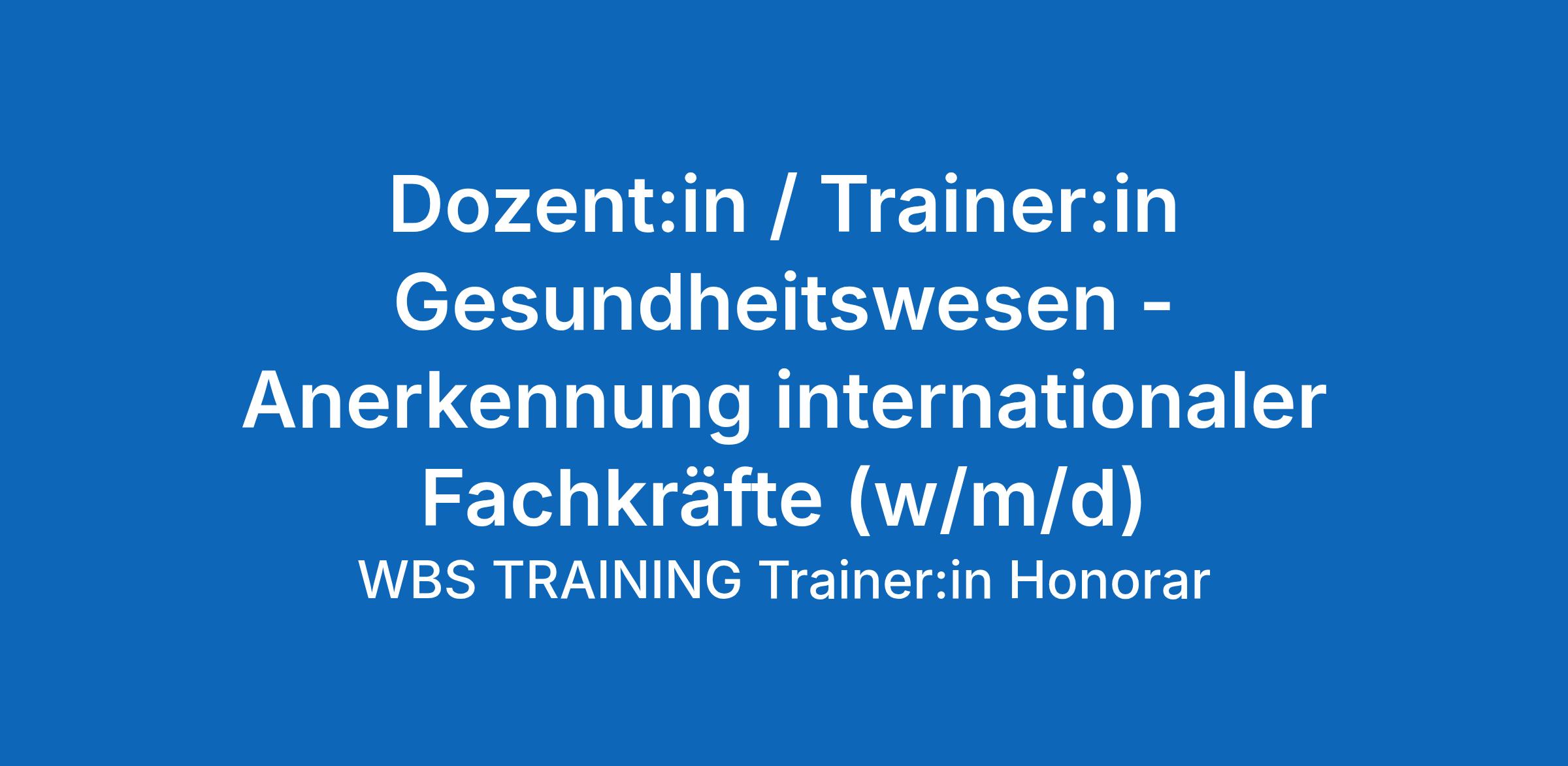 Als Honorartrainer:in unterstützt du unser Team im Recognition Center Magdeburg bei WBS TRAINING, einer Marke der WBS Gruppe. Gemeinsam bereitest du internationale Fachkräfte in einer wertschätzenden Lernumgebung auf ihre Kenntnisprüfungen in Pflege- und Gesundheitsfachberufen vor.