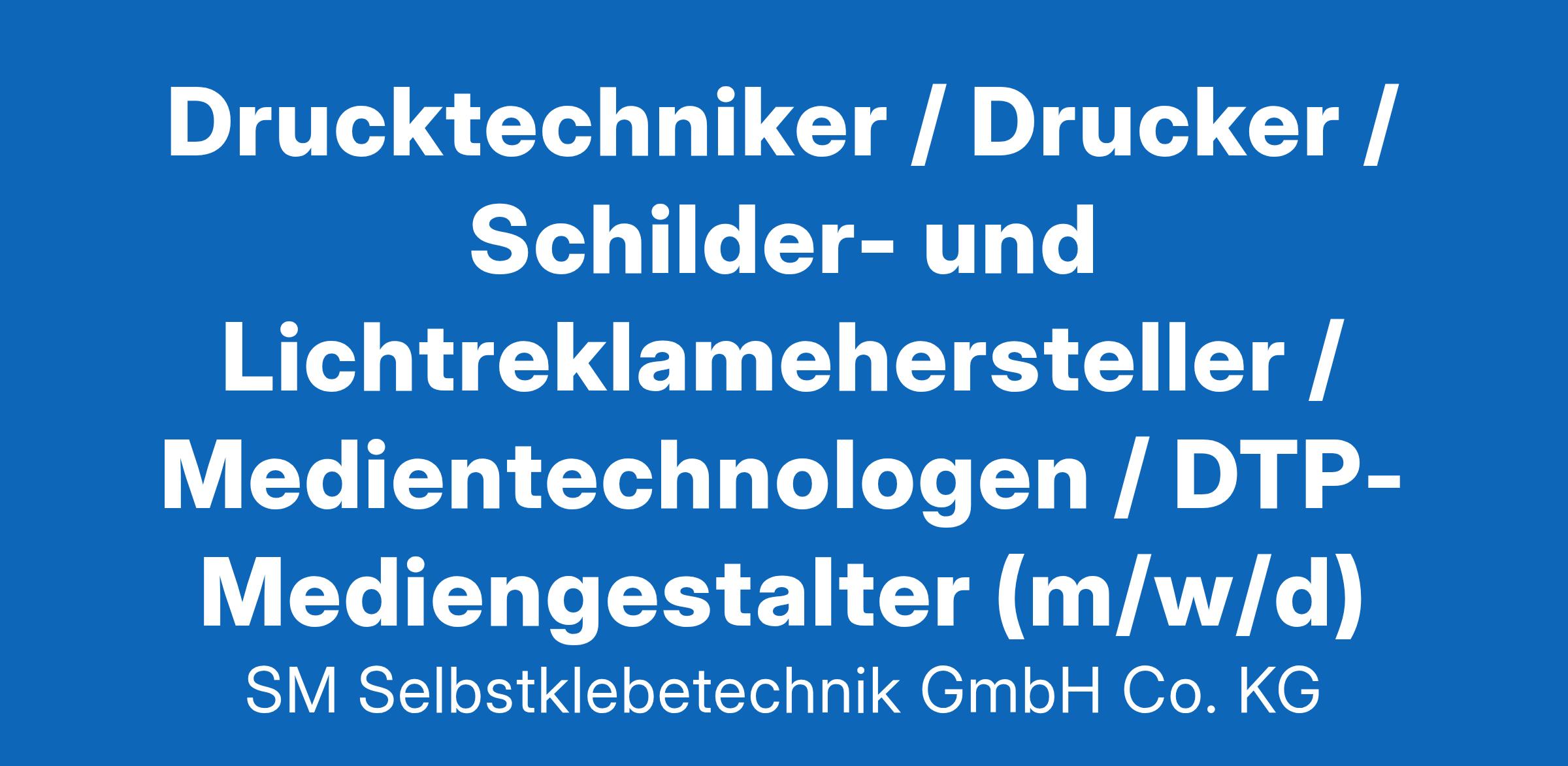 Drucktechniker / Drucker / Schilder- und Lichtreklamehersteller / Medientechnologen / DTP-Mediengestalter (m/w/d) Die SM Selbstklebetechnik in Emmering bei Fürstenfeldbruck ist als gefragter Industriepartner auf die Herstellung von Maschinenkennzeichnungen, Dichtungen und sonstigen selbstklebenden Lösungen spezialisiert. Unsere Kunden aus der Elektronikindustrie, der Medizintechnik, dem Maschinenbau und einer Vielzahl weiterer Industrien schätzen unsere Beratung, schnelle Lieferzeiten, die Produktion auch kleiner Mengen ab Stückzahl 1 und unsere Herstellerunabhängigkeit. Unsere Mitarbeiter produzieren hochwertige Selbstklebelösungen. Mehr als 30 SMarte Köpfe bilden mittlerweile unser wachsendes Familienunternehmen. Kommen Sie auch ins Team! Wir suchen ab sofort für unseren Sitz in Emmering / Fürstenfeldbruck Werbetechniker / Drucker im Digitaldruck / Mediengestalter Ihre Aufgaben: Produktion selbstklebender Artikel in den Bereichen industrielle Dichtungen, Kennzeichnung, Leitverbindungen, Isolierungen, Sicherheit, Warnzeichen etc. Einrichtung und Bedienung unserer CO2-Laser, Ecosolvent- und UV-Inkjetdrucker, Rollen- und Flachbettplotter und weiterer digitaler Maschinen Erstellung und Anpassung von digitalen Druckdaten für diverse Druckverfahren wie Offset oder Digital Erstellung und Anpassung von Produktionsdaten für die Maschinensteuerung Ihr Profil: Sie haben eine abgeschlossene Ausbildung bzw. Berufserfahrung zum Beispiel als Mediengestalter, Werbetechniker oder Drucker im Digitaldruck Sie verfügen als Praktiker über handwerkliches Geschick. Erfahrung an digitalen Maschinen, wie zum Beispiel Plottern und Digitaldruckern, ist von Vorteil Sie haben Erfahrung mit Grafikprogrammen wie Adobe Illustrator CS Sie identifizieren sich mit den von Ihnen hergestellten Produkten Sie lieben das genaue, zuverlässige und selbstständige Arbeiten und eine vielseitige Tätigkeit Wir bieten: Abwechslungsreiche und herausfordernde Tätigkeit in einer dynamischen und wachsenden Branche Spaß an der Arbeit, Mitarbeit in einem motivierten Team Training on the job durch erfahrene Kollegen Interne und externe Weiterbildungen Regelmäßige Arbeitszeiten, Einschichtbetrieb Unbefristete Beschäftigung und einen sicheren Arbeitsplatz Attraktives Gehalt Gute Erreichbarkeit auch mit öffentlichen Verkehrsmitteln Kostenlose Getränke und Obst Wenn wir Ihr Interesse geweckt haben, freuen wir uns über die Zusendung Ihrer aussagefähigen Bewerbungsunterlagen mit Gehaltsvorstellung und frühestem Einstiegstermin. Wir freuen uns auf Ihre Bewerbung per E-Mail unter quendt@klebeteam.de. Diskretion ist für uns selbstverständlich. SM Selbstklebetechnik GmbH & Co KG Moosfeldstr. 2 • 82275 Emmering/FFB