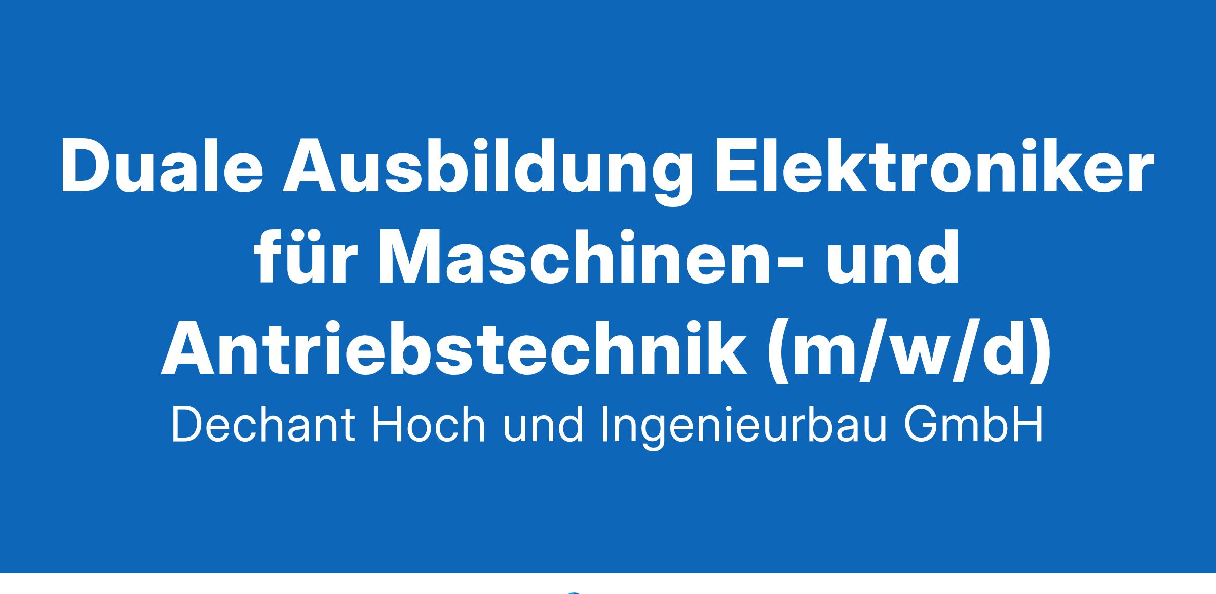 Für den Ausbildungsstart ab 2025 suchen wir einen Elektroniker für Maschinen- und Antriebstechnik (m/w/d) 3,5 Jahre Duale Ausbildung Immer unter Strom Ohne Strom geht auf einer Baustelle gar nichts. Egal ob für Maschinen, Antriebssysteme oder andere elementare Dinge: Du sorgst dafür, dass die Energie reibungslos vor Ort fließt. Darüber hinaus bist du für die Wartung und Instandhaltung von Geräten und Maschinen verantwortlich. Du begibst dich leidenschaftlich gerne auf Spurensuche von Fehlerquellen und stellst diese bestmöglich ab. Dein Anforderungsprofil Schnelle Auffassungsgabe Sorgfalt und Umsicht Technisches Verständnis Handwerkliches Geschick Bereitschaft zur Mobilität Teamfähigkeit Deine Perspektiven Meister Techniker Fach - und Betriebswirt, Fachkaufleute SPS-Fachkraft Ausbilder für anerkannte Ausbildungsberufe Geprüfter Fachmann für kaufmännische Betriebsführung Studium Energietechnik Automatisierungstechnik Elektrotechnik Mechatronik Informations -, Kommunikationstechnik Dein Verdienst 1. Ausbildungsjahr 1.080,- € / Monat 2. Ausbildungsjahr 1.300,- € / Monat 3. Ausbildungsjahr 1.550,- € / Monat 4. Ausbildungsjahr 1.650,- € / Monat Weismain ist für Dich schlecht erreichbar? Wenn Du im Umkreis von bis zu ca. 20 km wohnst, finden wir eine Mitfahrgelegenheit, kein Problem! Auch wenn Du von weiter weg kommst - sprich mit uns, wir finden eine Lösung! Benefits Exklusive Vorteile für dich! Gesundheit und Sport Fort- und Weiterbildung Zuschüsse und Konditionen Kostenlose Ausstattung Goodies und Specials Benefits ansehen Dein Ansprechpartner bei uns: Ingo Buchmann Leiter Personal dechant hoch- und ingenieurbau gmbh Postfach 65 · 96258 Weismain Besuche unsere Social-Media-Kanäle