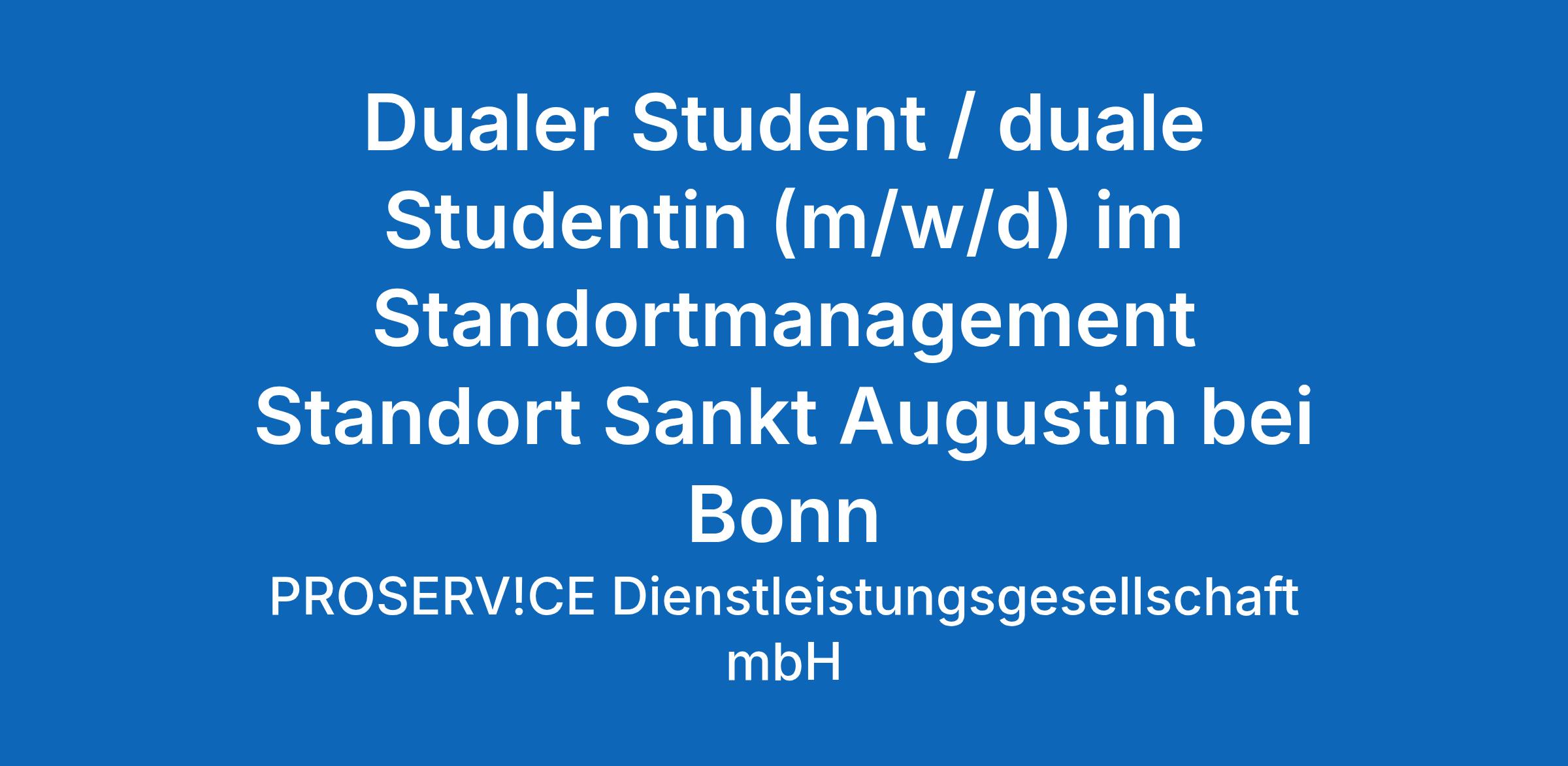 Dualer Student / duale Studentin (m/w/d) im Standortmanagement Standort Sankt Augustin bei Bonn